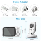 VB603 Video Baby Monitor 2.4G Mother Kids Two-way Audio Night Vision Video Surveillance Cameras With Temperature display Screen Feature * Support 2.4G /Stable connection * 2.4-inch high-definition LCD screen / display real-time screen * 380TVL display / 480X234 resolution * Built-in lithium battery /Charging can be used, reduce the trouble of battery replacement * Digital RF modulation with frequency hopping function /automatic switching of RF channels * Dynamic selection of clear channels / avoid interference from other 2.4GHz devices * Data privacy protection /support user ID identification * Sleeping music playback function / 8 kinds of built-in music * Accurate temperature monitoring /view real-time temperature * Two-way Audio /both receiver and camera have built-in microphone and speaker * Built-in advanced professional-grade VOX function /intelligent sound detection About plugs: All packages come with original EU plugs, with three adapters as a gift. You can connect adapters as needed 260m Transmission Distance The monitor has a signal coverage of up to 160 feet/50 meters indoors and 850 feet/250 meters outdoors. You can check your baby's real-time situation at any time Two-way Audio Both the monitor and the camera have built-in microphones and speakers, so you can make two-way voice calls with your baby, soothing your baby at any time when he finds out you're not around Built-in 8 lullabies The baby monitor has many built-in lullabies that you can set to play in the monitor to put your baby to sleep quickly and quietly Accurate temperature monitoring The monitor has a built-in temperature detector that detects the real-time temperature and displays it in the monitor, so you can check the ambient temperature of your baby AutomaticNight Vision The monitor can open the automatic night vision function at night to protect your baby 24 hours 360° Adjustable Angle Horizontal can be adjusted 360 °, vertical adjustment of 60 ° Built-in Battery Rechargeable battery, support wireless installation, you can place in many places, more comprehensive monitoring Compact and convenient Small size and light weight, you can better install and use Note: Please confirm the plug you are using before purchasing; if you are purchasing the 2pcs option, please make a note of the plug you need for your order Product Details EYE4U/Focus on security over for 10 years We pay attention to product details to bring you better security products Product List Monitor: 1.LCD Size: 3.2 Inch 2.Resolution Supported: 320 x 240 pixel 3.Receiving Sensitivity: -90dBm 4.Consumption Current: 200mA 5.Battery: Li-polymer / 750mAh 6.Power Supply: 5V/1000mA DC 7.Dimensions (W x H x D): 120mm x 70mm x 17mm Camera: 1.Image Sensor: CMOS 2.Total Picture Pixels: 0.3 Mega Pixels 3.Minimum Illumination: 0 Lux (IR on) 4.Night Vision Distance: 15 FT (5m) 5.View Angle: Diagonal 45° 6.Power Consumption: 200mA 7.Power Supply: 5V/1000mA DC 8.Dimensions (W x H x D): 67mm x 106mm x 67mm