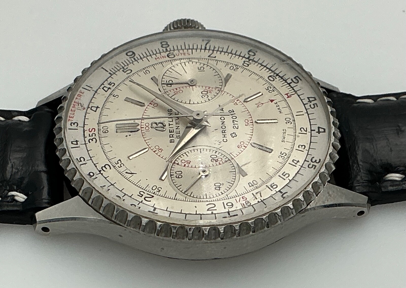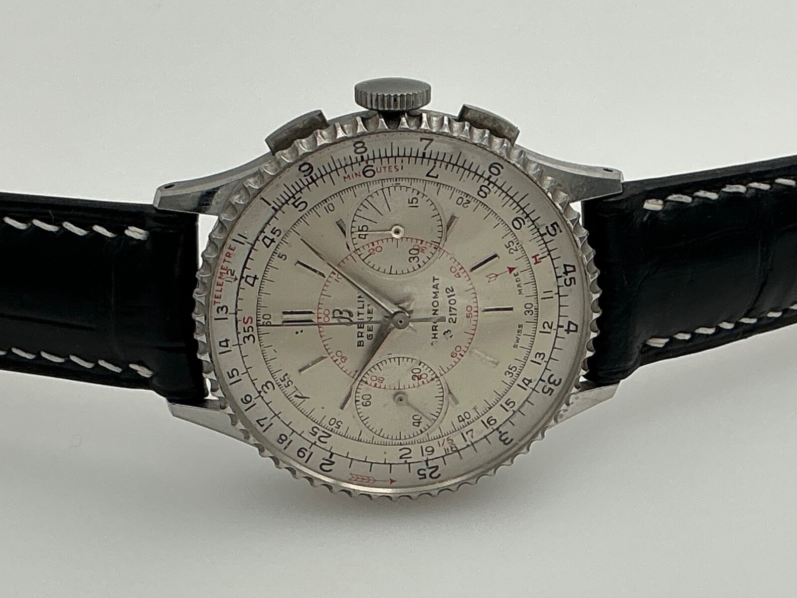 Rare Vintage 1945 Breitling 769 Chronomat 36mm Chronograph Steel Watch & Box • Breitling Navitimer 769 • Venus 175 Manual Wind Movement • Stainless Steel Case • Chronograph Function • Case Size 36.00mm • White Dial • Rotating Bezel • Plastic Crystal • New Bespoke Black Crocodile Strap • Breitling Steel Tang Buckle • Swiss Made • Water Resistant The Serial number is 7044xx which dates this watch to 1945 Comes with Breitling Box as pictured Guaranteed 100% Authentic or Your Money back! Look at my feedback for OVER 26 years and Buy with total confidence! We do not advise you to wait until the end of the auction to bid on this piece. This item is also for sale now in our retail store until a bid is placed. If you are in the South Florida area you can always come in and look at my merchandise. Be sure to check out my other auctions. Look at my feedback and bid with total confidence.