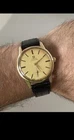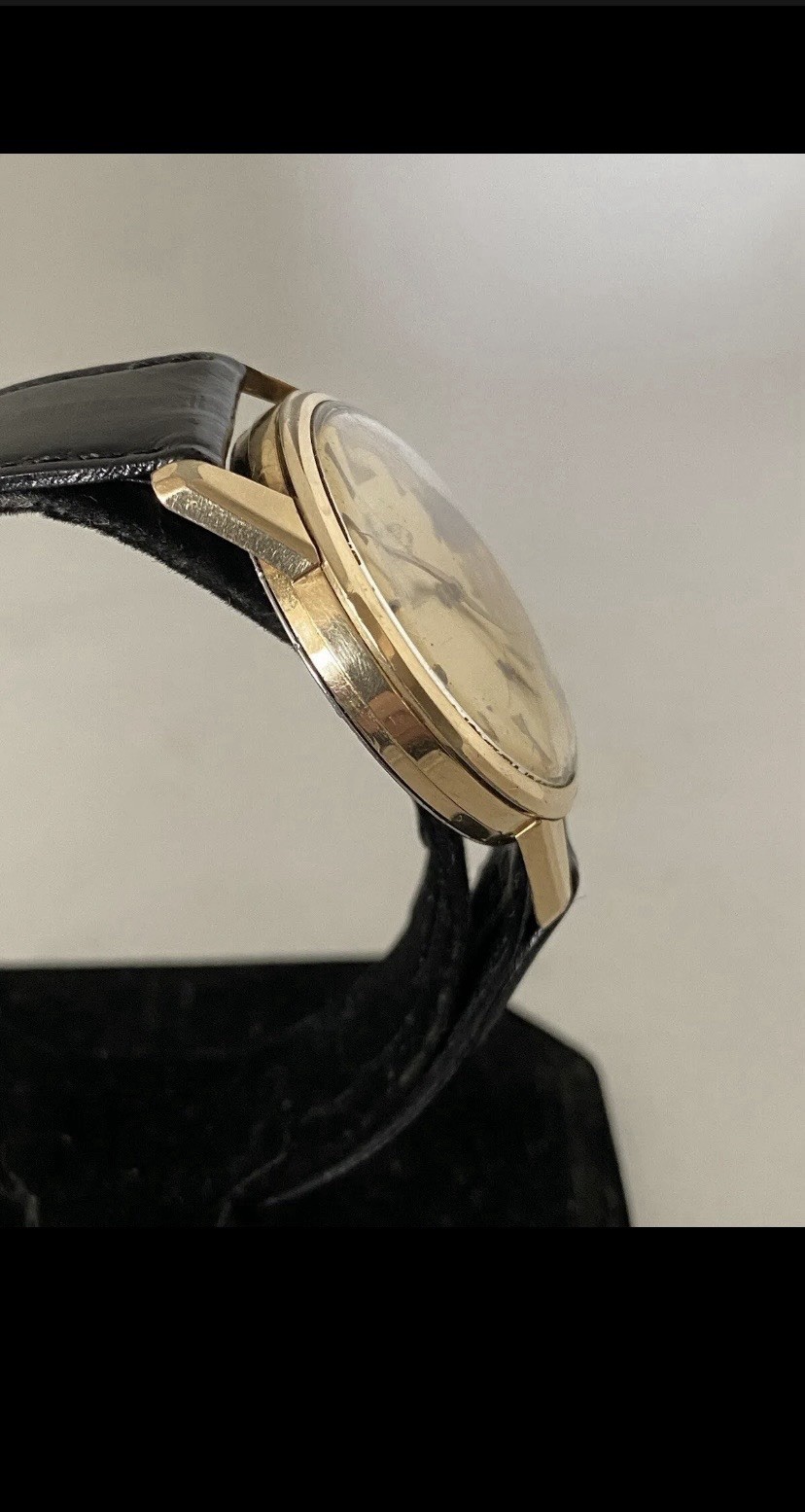 The Men's Vintage Omega Seamaster Watch from the 1960s features a rare tapestry dial and a classic round shape, making it a timeless piece for any collector. This Omega watch, with a stainless steel case and black band, is a true vintage treasure from Switzerland. It boasts a gold dial, central second hand, and self-winding movement, offering both style and functionality. Though it does not come with papers or service records, this vintage Omega Seamaster watch is a valuable addition to any man's wristwatch collection. This watch is used but still functional and in good condition!