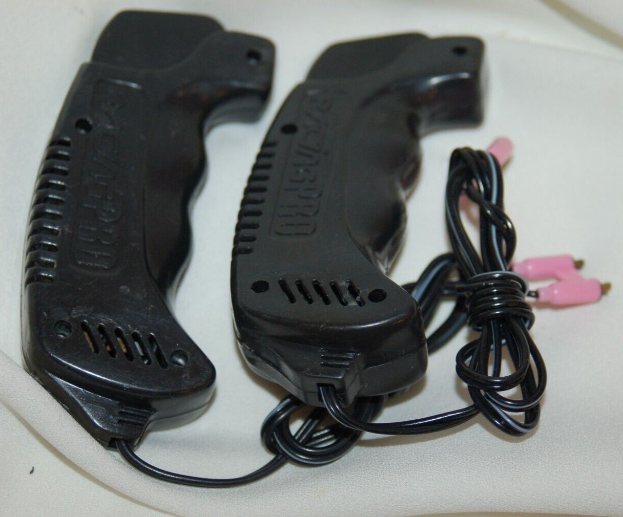 ITEM DESCRIPTION: I WILL BE SELLING A VARIETY OF ITEMS FROM VARIOUS VINTAGE HO SLOT CAR SETS, VINTAGE AURORA, AFX, TYCO, AND HOT WHEELS, THE TRACK MAY RANGE FROM GOOD TO NEEDS CLEANING FROM OXIDATION ETC. SOME MAY HAVE BROKEN TABS, NO CLIPS, PINS OR OTHER ITEMS EXCEPT LISTED TRACK ARE INCLUDED. I HAVE CLEANED THE TRACK OFF BUT AGAIN, THERE MAY BE OXIDATION: THERE ARE YOU-TUBE VIDEOS THAT SHOW HOW TO CLEAN YOUR SLOT CAR TRACK, FROM HEAVY CLEANING TO LIGHT MAINTENANCE. MAKE SURE TO CHECK OUT MY OTHER AUCTIONS FOR THE PARTS YOU MIGHT NEED. NO RESERVE, SEE PICTURES. THANK YOU AND HAVE A BLESSED DAY. FOR THIS SALE YOU GET: VINTAGE RACING PRO PAIR OF PLUNGE STYLE SLOT CAR CONTROLLERS WITH PLUGS BLACK 2 PINK PRONG, UNTESTED SO PARTS REPAIR LOT. THEY MAY WORK FINE THEY MAY NOT. THIS IS FOR A PART NOT THE WHOLE SET, PARTS REPAIR REPLACE YOUR EXISTING HO TRACK. PLEASE NOTE, YES THIS IS A NEW ACCOUNT, HOWEVER I HAVE 24 YEARS OF SELLING EXPERIENCE ON EBAY, PLEASE BUY WITH CONFIDENCE KNOWING THAT I KNOW WHAT I AM DOING, I KNOW HOW TO PACK, SHIP, COMMUNICATE AND MAKE A SALE IS A PLEASENT EXPERIENCE THAT WILL MAKE YOU WANT TO BUY FROM ME AGAIN. THIS IS JUST A NEW AVENUE FOR SELLING TO MAKE SOME EXTRA FUNDS. I TRY MY BEST TO DESCRIBE THINGS AS I SEE THEM, DISCLOSE ISSUES OR CONCERNS ON MY ITEMS, PLEASE TAKE A MOMENT TO READ THE FOLLOWING TO ALLOW FOR A PLEASENT SEAMLESS TRANSACTION, THIS SHOULD ANSWER MOST OF YOUR QUESTIONS. IF YOU STILL HAVE A QUESTION, PLEASE CONTACT ME. SCAMMERS BEWARE, I AM NOT NEW TO EBAY THIS IS JUST A NEW BRANCH OF MY SELLING TREE, I WILL HAVE ZERO TOLERANCE FOR ANY ATTEMPT TO REQUEST ANY CONTACT OUTSIDE OF EBAY, ANY ATTEMPT TO SOLICIT PAYMENT OR PERSONAL INFORMATION, TEXT ME MESSAGES, ETC. SHIP TO ANOTHER ADDRESS AFTER THE SALE REQUEST, YOU WILL BE INSTANTLY REPORTED. SHIPPING: PLEASE NOTE I DO NOT CHARGE HANDLE FEES; YES, I COMBINE SHIPPING COSTS TO SAVE YOU MONEY, AND WILL CHARGE ACTUAL SHIPPING COSTS, JUST HOLD OFF PAYING AND I WILL CONTACT YOU WITH AN INVOICE. PLEASE NOTE, PER EBAY GUIDELINES, I WILL NOT SHIP TO A NON-REGISTERED ADDRESS, IF YOU CONTACT ME AFTER THE SALE AND ASK ME TO SHIP TO ANOTHER ADDRESS NOT LISTED, I WILL CANCEL THE SALE AND RELIST NO EXCEPTIONS, I LOSE SELLER PROTECTION AND BUYER LOSES BUYER PROTECTION AND THIS WILL AVOID FRAUDULANT PURCHASES. I WILL PACK YOUR ITEM CAREFULLY AND SECURELY. I TRY TO GIVE YOU THE BUYER THE CHEAPEST SHIPPING OPTIONS, AND WHEN POSSIBLE, SEVERAL OPTIONS TO ALLOW YOU TO PICK THE CHEAPEST SHIPPING OPTION TO YOU. I WILL PROVIDE YOU WITH TRACKING INFORMATION SO YOU CAN KEEP TRACK OF YOUR ITEM. PLEASE NOTE IF THERE IS A MAJOR ISSUE IN SHIPPING COSTS AFTER THE SALE WHERE IT COSTS ME MORE TO SHIP THAN WHAT I CAN AFFORD WITHOUT TAKING A LOSS, I WILL CONTACT YOU AND ISSUE A FULL REFUND. MISTAKES HAPPEN. COMMUNICATION , PLEASE EMAIL ME WITH YOUR QUESTIONS, I WILL TRY TO ANSWER YOUR QUESTIONS IN A TIMELY MANNER, PLEASE ALWAYS BE RESPECTFUL, AND LET'S BE CIVIL, IF THERE IS A CONCERN CONTACT ME AND I WILL EXPLORE THE OPTIONS TO MAKE IT A WIN-WIN SITUATION. I AM ALWAYS OPEN TO OTHER SELLERS AND BUYERS TO SHARE KNOWLEDGE AND BE EDUACATED, IF YOU SEE SOMETHING I HAVE AND MY DESCRIPTION IS OFF PLEASE LET ME KNOW. I WILL BE VERY APPRECIATIVE. IT IS ONE OF THE THINGS I MOST LIKE ABOUT THE EBAY COMMUNITY. PLEASE BE KIND AND RESPECTFUL, I HAVE NO TOLERANCE FOR SNARKY, RUDE INAPPROPRIATE COMMUNICATION, RETURNS : FIRST AND FOREMOST, IF THERE IS A CONCERN, PLEASE PROVIDE ME PICTURES SO I CAN SEE WHAT YOU SEE. IF THERE IS NOT A WAY TO CORRECT THINGS OR I MAKE A MAJOR MISTAKE PLEASE CONTACT ME PRIOR TO OPENING A RETURN, ONCE A RETURN IS OPEN IT LIMITS MY OPTIONS, IF EVERYTHING IS OK BUT YOU CHANGED YOUR MIND, IT IS NOT WHAT YOU THOUGHT ETC, YOU THE BUYER WILL PAY RETURN SHIPPING, IN MOST CASES I WILL NOT REFUND YOUR SHIPPING COSTS, AND THERE WILL BE A RESTOCKING FEE OF 10 PERCENT JUST TO COVER EXPENSES OF MATERIAL ETC. PLEASE AGAIN CONTACT ME FIRST. FEEDBACK , PLEASE LEAVE ME FEEDBACK, IT IS HOW BUYERS KNOW I AM A REPUTABLE SELLER AND TRUSTWORTHY, WHICH I AM, I WILL LEAVE YOU POSITIVE FEEDBACK, ONCE THINGS ARE UP AND RUNNING, I WILL SET UP AUTOMATED FEEDBACK FOR BUYERS.