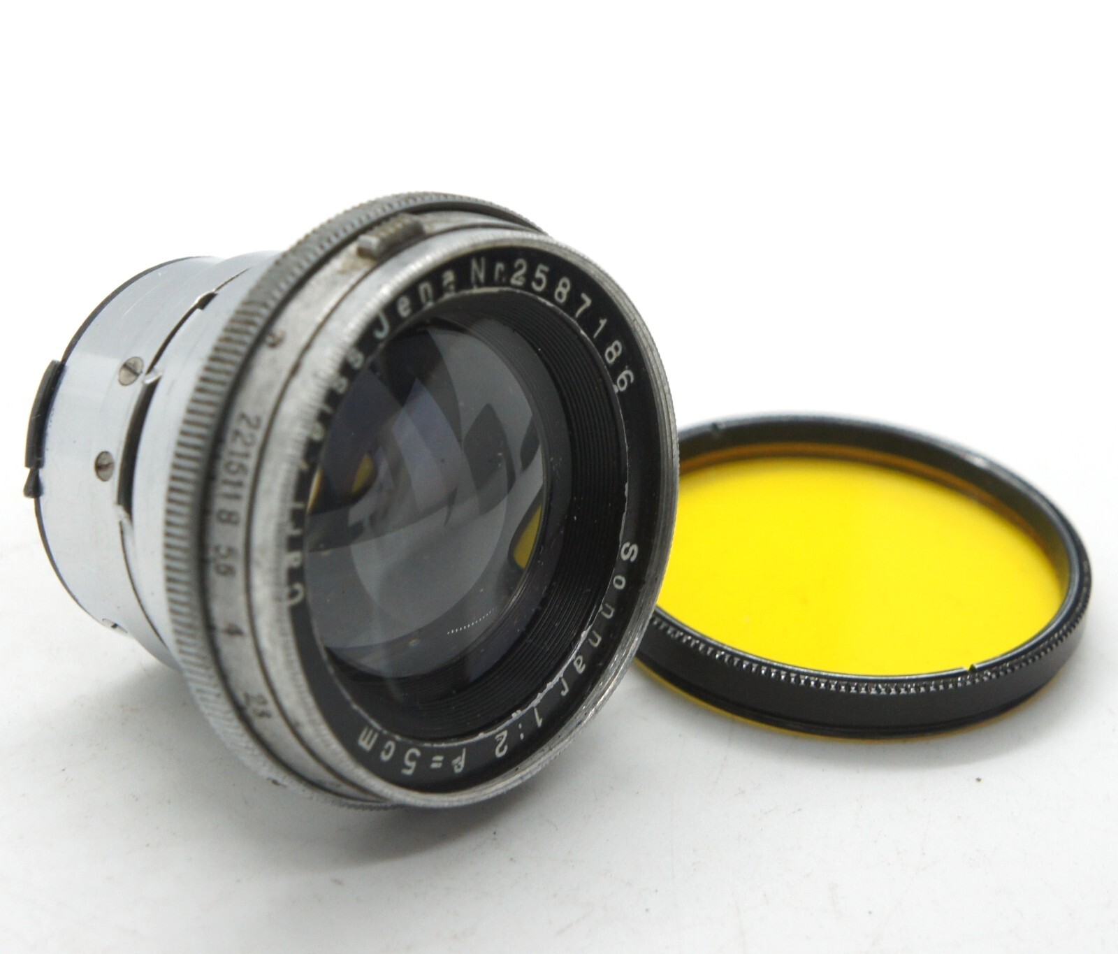 Carl Zeiss Jena Sonnar 50 mm 2.0 Lens For Contax rangefinder cameras SN 2587186 Pre-war collapsible version. Made in 1939 Lens was sitting on Contax II rangefinder camera. Also can be used on a modern Digital mirorrless cameras like SONY Nex via special adapter Contax RF-Sony Nex. CONDITION : EXCELLENT WORKING No damages, no fungus, no fog, no separation. Aperture blades work great. Comes with a yellow color correction filter and a bonus case. Do not miss! Payment within 3 days International Shipping with a tracking number. Buyers with a feedback of less than 10 points should contact me first! ITEM # 04909