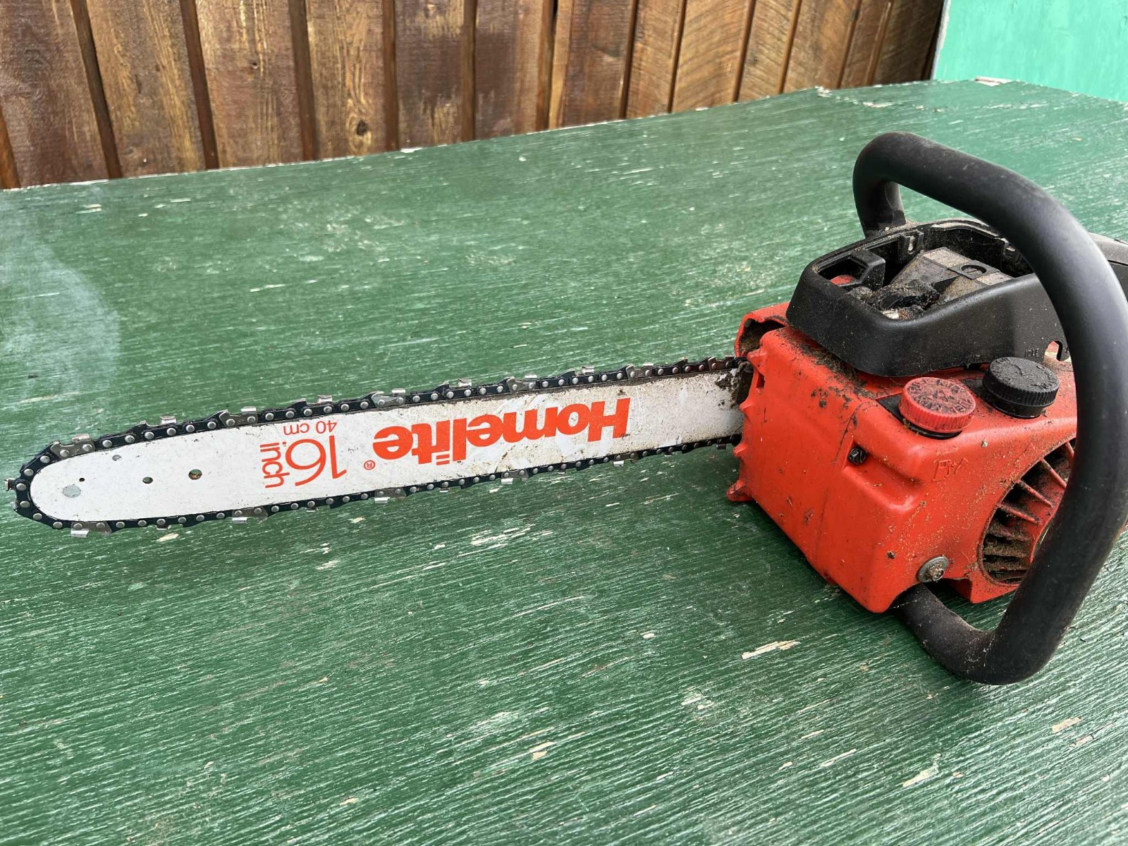 Just found at a local estate sale...a very interesting old chainsaw. This is a HOMELITE 240 chain saw with 16" bar. I pulled on the cord and it has compression. I don't know much about chainsaw...so please have a look at the photos.