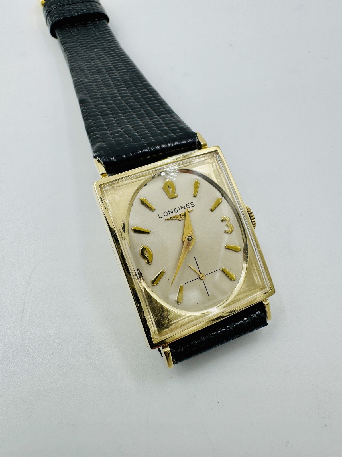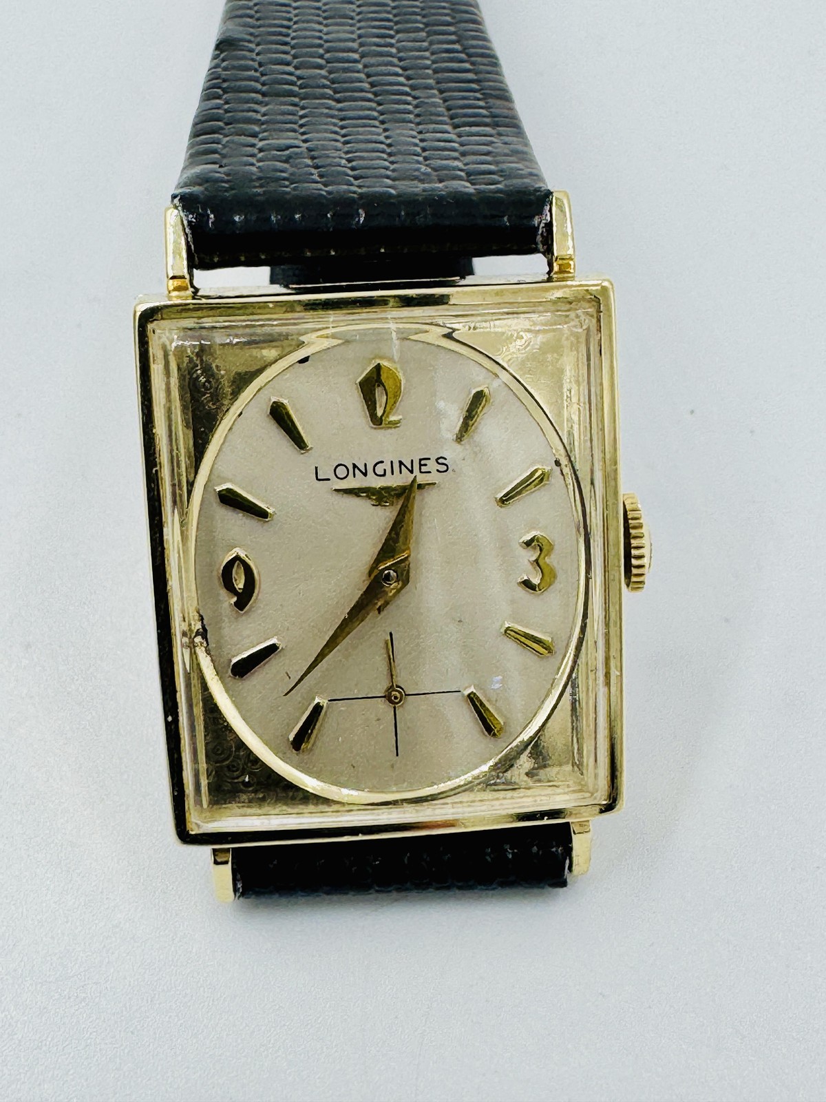 Title Vintage Longines 370 Men's 14k gold Mens Wrist Watch Serviced Vintage Longines 370 manual movement Men's 14K Gold Mens Wrist Watch Circa 1940's. Great looking watch in exceptionally nice condition considering it's, with original crown and new lizard black strap. This watch has been serviced and running strong with no issues to note. We are Jewelers all of our items are professionally inspected and tested, we guarantee all of our items to be as described, we have many other hard to find items listed so please take a look, you never know what you might find. Case measures 23.8mm by 28.4mm and 37mm lug to lug. Band: new lizard strap. Case: 14k Yellow gold Shipping Policy Guaranteed 1-2 Business Day Handling Time, Fast & Secure Shipping. Domestic U.S. Shipments may qualify for our Free Shipping program. (Free shipping will display automatically under pricing when applicable) For International destinations, Shipping fees are calculated at checkout. Return Policy We offer a 30 day return policy. Items must be returned in their orignial condition, with original packaging and contents. All products are sold "as-is", flaws and age-related wear are typically found on pre-owned Jewelry. Any applicable fees for accepted Returns are to be paid for in full by Client. Contact Us Please refer to the pictures and be encouraged to clarify any details regarding this listing before placing a bid or making a best offer! We are jewelers and all of our items are professionally inspected and tested. We guarantee all of our items to be as described. We have many other hard to find items listed so please take a look, you never know what you might find. Thank you and happy shopping. Powered by