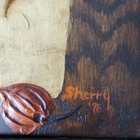 This is a beautiful and authentic piece of mid-century modern folk art signed by the artist "Sherry" and dated 1978. This handcrafted wall plaque features a charming three-dimensional relief design of a fall botanical arrangement, including: Sunflowers Cattails Chinese Lantern seed pods Assorted autumn leaves The scene is set in an off-white vase on a dark-stained wood background, framed within a solid wood border. The signature "Sherry '78" is clearly visible in the bottom right corner. This piece makes a perfect statement for rustic, farmhouse, or vintage decor styles. Details: Artist: Sherry Year: 1978 Style: Mid-Century Modern, Folk Art, Rustic, Botanical Material: Mixed Media on Wood Dimensions: 16 inches wide x 28.5 inches high Orientation: Vertical Mounting: Ready to hang (hardware included/attached)