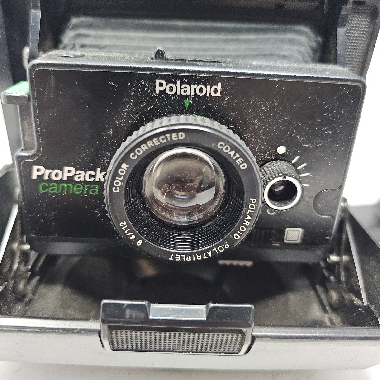 .. Untested for parts only Film door missing lock botton See photos before you purchase Capture timeless moments with this vintage Polaroid ProPack Instant Camera. With its classic black color and electronic ProFlash, this camera is perfect for photography enthusiasts who appreciate the charm of film photography. The camera is from the trusted Polaroid brand and features a Propack Land Camera model. This camera is a great addition to any vintage camera collection and is perfect for taking instant photos with a retro flair. Its untested nature adds to its mystery and intrigue, making it a unique find for any photographer. Don't miss out on the opportunity to own a piece of photographic history. ....................?....................