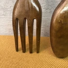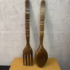 This Vintage Tiki Large Wooden Fork and Spoon Wall Decor is a stylish addition to any room in your home. Standing at 71cm tall, these 1960d mid-century modern pieces are crafted from wood and feature a tiki pattern, giving your space a unique and retro vibe. In Philippine culture these are said to offer good health and prosperity. The brown colour and abstract art subject make them a decorative focal point, perfect for adding a touch of vintage charm to your kitchen or living area. Good condition - a few marks commensurate with age and the spoon is slightly lighter. Please see all images Thank you for viewing 🤗