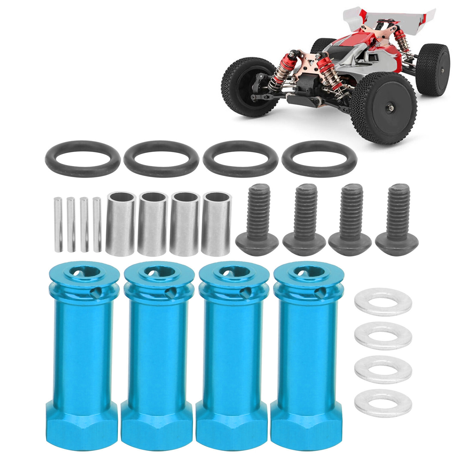 Feature: 1. Made of high‑quality aluminum alloy material, environmentally friendly, sturdy and durable. 2. High quality, with accurate size, with fixing screws, easy to install and replace. 3. Improve the overall performance of the model car, it is durable and can be used for a long time. 4. It can extend the wheelbase and improve the stability of car, the fixed end has high strength and is not easy to deform. 5. Fine workmanship, suitable for WLToys 144001 1/14 remote control car, fit well. Specification: Item Type: Hub Hex Adapter Material: Aluminum Alloy Hex Adapter Length: Approx. 29.5mm/1.2in Hex Adapter Diameter: Approx. 12mm/0.5in Weight: Approx. 20.0g/0.7oz Type: RC Accessories Quantity: 4 Groups Fit for WLToys 144001 1/14 RC Car Package List: 4 x Hub Hex Adapter 4 x O-Shape Sealing 4 x Screw 4 x Pin 4 x Screw Column 4 x Gasket Note: 1. Manual measurement, please allow 1‑3mm/0.04‑0.12in error, thank you. 2. Due to the difference between different monitors, the picture may not reflect the actual color of the item.