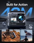 Dual Color Screen Design: The WOLFANG GA120 action camera is equipped with advanced dual color screens, providing you with the option to switch between the front and back screens by long pressing the "DOWN" button on the side of the camera. The addition of the front screen broadens the video shooting mode, making it easy for you to control the shooting angle and shooting screen of vlog videos and selfie videos. Add more vibrancy to your cycling, selfies, and other recordings. (Not Touch Screen) 4K Video & 20MP Photo: WOLFANG GA120 action camera supports basic video resolution options such as 4K 30FPS / 2.7K 30FPS / 1080P 60FPS / 720P 120FPS. Capture each of your vibrant adventurous moments with unparalleled clarity. Photo resolution can be selected from 20MP/16MP/12MP/8MP to meet various needs for professional photography and daily record sharing. 40M Waterproof Camcorder & Diving Mode: The GA120 underwater camera includes a reinforced waterproof case that supports 40M waterproofing. Equipped with a shell, you can not only record the highlight moments of various water sports such as snorkeling, swimming, sailing, kayaking, etc., but also deeply explore the mysterious underwater world. Diving mode can easily help you perform color correction when shooting underwater and clearly record the beautiful scenery under the sea. Wi-Fi Connection & Versatile Use: GA120 go pro camera can connect to smartphone via the "IBK CAM" app for real-time video, picture sharing and remote control of the camera; can be used as a PC webcam when connected to a computer via USB; loop recording function allows the camera to serve as a dashcam for added driving protection. EIS Anti-Shake & Multi-Mode: GA120 gopro is equipped with EIS anti-shake function, which greatly improves the stability and smoothness of video shooting, helping you easily record highlights in sports. GA120 go pro supports a variety of recording modes, such as burst photo, timed photography, continuous recording, time-lapse recording, loop recording, slow motion and automatic recording at startup.