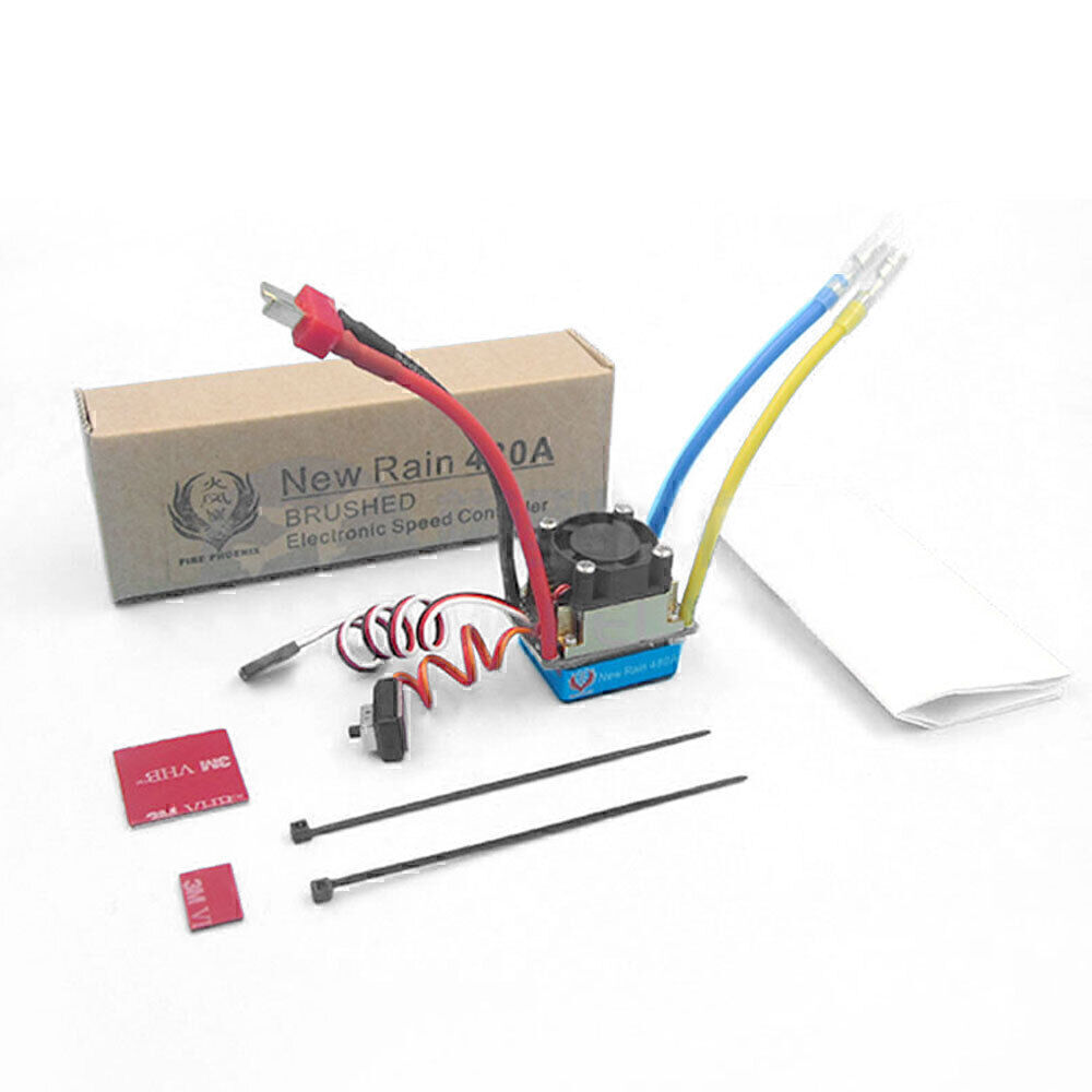 SAFE & SECURE SHOPPING 100% SATISFACTION GUARANTEED FAST SHIPPING Brushed ESC 480A Waterproof 3 Modes for 540 550 775 Motor RC Car Truck Crawler Product Description If you have any questions, please contact customer service first, do not open disputes easily, thank you! Features: 1. This ESC has three modes, can be set to "Forward/brake/reverse" mode, "Forward/reverse" mode and "Forward/brake" mode, very convenience to switch the mode. The forward/brake/reverse mode adopts "double click" operating method. 2. Mutiple protection features: Low voltage cut-off protection, over-heat protection, throttle signal loss protection. Fully waterproof and dustproof. Specifications: Product Name: 480A Waterproof Brushed Two-way ESC Optional plugs: T plug, XT60 plug, TAMIYA plug Applicable motor: 380, 540, 550, 775 motors Voltage range: 7.4-14.8V, 2-4S BWC output: 5V / 3A Internal resistance: 0.0015 ohm Motor speed range: 2 lithium batteries: 540, 775 motors, <20000RPM / 7.2V 3 lithium batteries: 540, 775 motors, <15000RPM / 7.2V 4 lithium batteries: 540, 775 motors, <10000RPM / 7.2V Continuous / instantaneous current: forward -80 / 4800A, reverse -60A / 300A Weight: about 62g Size: about 42 * 28 * 36mm Package list: 1 x 480A Waterproof Brushed ESC 1 x Manual Tips: 1. The plug must be pulled out first to switch mode, to switch mode is not valid when power is on. 2. Return to the neutral point fanction in RC controller is necessary at "Forward/brake/reverse mode" and "Forward/reverse mode",Throttle rocker must be returned to the neutral point before power on the ESC. About Us About Us We accept all payments authorized by eBay. Copyright © 2022 Tongtool