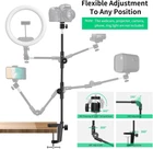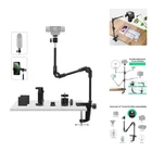 Webcam Stand Camera Mount with Holder & 5/8" Screw, 25in Flexible Projector Stand Gooseneck Desk Mic Stand for Logitech C922 C930e C920 C615 C960 Brio 4K, GoPro, Blue Yeti Snowball Ice 【Flexible Adjust Height and All-Angle】The most innovative design of webcam stand is that each bracket rod can be flexibly adjusted 360-degree rotation and 180-degree bending to any angle and position you need. Max Height 25 inches. It can achieve over " of horizontal reach and 360° rotation; " of vertical adjustment and 180° rotation. You can also show more of your DIY creativity! 【Super Strong Joints With Fixed Gears】Are you still using bendable snake arms and swing arms that will move and fall over time due to gravity? Our camera stand with fixed gears can solve all your worries! Durable reinforced aluminum alloy camera desk mount with outstanding bearing capacity, max load up to lbs. Super safe and stable for your valuable devices. 【3-in-1 Wide Compatibility】1/4" adapter is compatible with Webcam Brio 4K, C925e, C922x, C922, C930e, C930, C920S, C920, C960, C615, Action Cameras, GoPro Hero 9/8/7/6/5, Projectors, DSLRs, ring light etc with standard 1/4" screw hole. Comes with an extra standard 1/4" to 5/8" screw adapter can fit for Blue Yeti, Blue Snowball, Yeti Nano etc micros and shock mounts and more devices with a 5/8" screw hole. Also a universal holder is included for all 4""(screen) smarts. 【Stronger Anti-Scratching Clamp】The projector stand with an adjustable clamp base can open max to inches. The clamp with sponge pad and we provide 2 extra rubber pads to protect your furniture from scratch, allowing you to securely clamp it on the desk, table, bed headboard, nightstand, kitchen counter etc. You can also carry the webcam holder stand anywhere since it is folded and extremely portable to carry. 【Easy to Use & Best Value】Easy installation within minutes, just several steps for assembly. We provide a standard user guide for you to make installation as easy & convenient as possible, if you have any problem, please feel free to contact me at anytime. Package includes: 1xAluminum Alloy Bracket, 1xDesk Clamp Mount, 1x3/8" Adapter, 1xMetal Ball Head, 1x1/4" to 5/8" Screw Adapter, 1x Holder Mount, 2xRubber Pads, 1xUser Guide.
