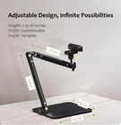 This adjustable webcam stand from is a must-have for video calls and livestreams. Crafted from durable aluminum alloy, it provides sturdy support for your webcam while staying lightweight enough to tote around. The flexible arm can be positioned precisely to frame your face at the perfect eye-level angle, whether you're sitting or standing. The spring-loaded clamp securely grips the edge of monitors, laptops, , and more without slipping or scratching surfaces. Adjustable from 5 to 10 inches tall, it accommodates screens of all sizes. Setup is simple and tool-free - just open the clamp and snap it into place. When your video is done, it folds down compactly for portable storage. An affordable solution for elevating your video presence, this webcam stand delivers professional-quality at an everyday price. Designed with compatibility in mind, the 1/4" adapter securely fits most screw webcams, including popular models such as Brio 4K, C925e, C922x, C922, C930e, C930, C920, C615, and others with a 1/4" thread. Whether for virtual meetings, streaming, or content creation, rest assured your webcam will find a secure home. Seamless Multitasking Companion: Elevate your productivity with this versatile stand, designed to effortlessly hold both your cellphone and simultaneously. Seamlessly switch between devices while cooking, studying, or attending virtual meetings, enhancing your efficiency and multitasking capabilities. Flexible Adjustability: With its double-joint design, this stand offers exceptional flexibility. Easily switch between portrait and landscape modes for optimal viewing, whether you're watching , conducting video calls, or following recipes while cooking. Plus, adjust the height from 2 to 18 inches and angle the arm as needed for customized comfort. Durable Construction, Lasting Quality: Crafted from premium materials, including high-density aluminum alloy and a sturdy iron base, this stand is built to withstand the rigors of daily use. The robust construction ensures stability and durability, providing a reliable platform for your devices for years to come. Effortless Installation and Setup: Experience hassle-free setup with our intuitive design. The stand can be quickly assembled without the need for complex tools or instructions, allowing you to start enjoying its benefits in no time. Simply the straightforward installation process and begin maximizing your productivity immediately.