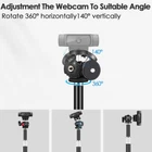 Webcam Tripod Stand for Desk: Webcam Mount for Logitech Brio | C920 | C922 | Razer | Elgato- Height & Angle Adjustable Desktop Tripod for Light & 1/4" Thread for any webcams with 1/4'' Interface Height ADJUSTABLE】The webcam stand for Logitech webcam is adjustable in height from 9.2‘’ to 15.5‘’, with locking knob, and you can adjust it as you like, without worrying about falling 【ANGLE ADJUSTABLE】The webcam stand for desk c920 with steel ball head can 360°rotation horizontally and 140°vertically, you can point it down, up, sideways - any direction 【UNIVERSAL 1/4" SCREW】This webcam tripod stand with 1/4'' screw thread is compatible with logitech BRIO Ultra HD 4K Pro Webcam C920 C922 C925e C930 C930e C615, webcam holder for Razer/Elgato and other universal 1/4" screw devices 【EXCELLEN STABILITY】Specially designed a metallic base with non-slip cottons to keep the light stand stable, moving it without generating any noise and leaving any scratches on the table. This light stand tripod can be widely used for work, recording, Video Calling, zoom meeting, live streaming, online classes, ect