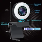 Webcam with Microphone, 2K Streaming Webcam for PC, Laptop, Plug and Streaming Webcam with Ring Light and Tripod Adjustable Brightness for Online Classes, Video Call, Conference, Gaming Description ☀️️[Professional Webcam for Streaming] network Camera provides clear video at 30 fps per second, with a resolution of up to 1920*1280, can provide clear and smooth video for Skype chat and YouTube recording, USB pc camera with 500W pixels ☀️[Dual microphones & smooth image quality] The built-in dual stereo microphones have an automatic noise reduction function that can enhance the sound quality of the video. H.264 encoding can compress digital video files, and only takes up half the space of MPEG to provide the same quality video. This is a clearer and smoother video conference and real-time picture ☀️[Ring Fill Light] The built-in ring light provides different levels of lighting compensation. It is specially designed for social games and online communication, making your video chat more confident and professional. (Note: the lighting function is only an auxiliary function, to make it brighter and not a ring light for live broadcast) ☀️【Rotating Camera&Adjustable Tripod】The webcam board can rotate 360° freely. You can adjust the viewing angle as needed. The webcam comes with a tripod that fits your multi-angle needs on computers, laptops, desktops, and all flat surfaces. ☀️【Drive-free& Plug and Play】Webcam can just plug and play video, without installing any extra software or drivers. the webcam works easily after connecting to your PC through its USB 3.0 port.Fits for multi-operation: Windows 8, 7,10, XP,Mac OS X etc. PC webcam 90 Degrees Wide-Angle view Capturing the most details at every 30fps, and 90° wide-angle lens reduces dead angles. HD web camera with 90 degrees wide angle,Perfect for conferencing, video calling, live streaming, recording, gaming... Plug and Play Simply plug the webcam into the USB port of your laptop/ desktop/ PC and it will be instantly installed. No third party software or drivers needed,making it all as simple as possible for you. Web Camera with a Mini Tripod The computer camera with a tripod can be placed on the desktop to watch the video without affecting the screen, and the video can be opened clearly.The detachable tripod can be flexibly placed anywhere on the table. Shipping We only ship items to your eBay registered address for fast and accurate shipment. Thanks We will ship most orders within 1 business day some items ship same day if ordered early enough Delivery >All shipments are shipped via USPS First Class (2-6 business day) from United States. Return Policy All items qualify for returns within 30 days of receipt. Feedback 1.We strive for 5 star positive feedback. We try our best to offer the best service for our buyers. 2.Please message us via eBay before leaving negative feedback.Let's solve the problems together! 3.Please give us a chance to resolve any issues before posting a feedback. 4.Please contact us with any questions or concerns. Thank you for your watch. We look forward to serving you.