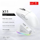 Attack Shark X11 PAW3311 Bluetooth Mouse, Triple Mode Connectivity, Touch Magnetic Charging Dock, Ultra-Light Gaming Mouse Product Parameters: Model: 11 Connection: Wired/2.4G/BT5.2 Size: 128x64x40MM DPI: 400- 22000dp i Weight: 63g±3g Return Rate:125-1000Hz Image Sensors: PixArt PAW3311 HUANO Switch: Pink Spots 80 million times Working Life: 65H Accelerated Speed: 50G Movement Speed :650IPS Colour: Black/White Supported operating systems: XP, Win7, Win8, Win10, Mac, Android, etc. Integrated full-function base: Magnetic fast charging, streaming light ring Magnetic charging base with exclusive RGB light ring, support multiple light effects switching with one key. Lighting effect switching by touch ,Multiple light effects switching in seconds Macro Drivers: One app for total control. dpi adjustments, payback rates,custom macros,A range of configurations such as keystrokes and programming can be set and saved in the driver. Packing list: 1× Mouse 1× 2.4G Receiver 1× Manual 1× Type-C Charging Cord 1× Charging base 1× Anti-skid stickers Note: If there is a mistake in the weight and battery capacity indicated in the box and manual, the description uploaded in this link shall prevail.