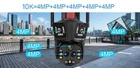 10K/8K 4MP WIFI IP Camera HD Four Lens PTZ Camera Outdoor 20X Zoom Motion Detection Security Camera Waterproof Surveillance Camera Feature: 1. Five Lenses & Five sensors & Three screens design, allowing you to see more details; 2. 10K camera has an ultra wide angle+20x optical zoom, achieving clear monitoring of far and near distances; 6K camera does not support zoom 3. 8K / 10K two resolutions for you to choose. Ultra high definition graphics bring you a higher definition visual experience 8K Resolution: Pixels of each lens are 4MP, 4MP Lens + 4MP Lens+4MP Lens+ 4MP Lens= 8K 10K Resolution: Pixels of each lens are 4MP, 4MP Lens + 4MP Lens + 4MP Lens + 4MP Lens+ 4MP Lens = 10K 3. Equipped with a high gain enhanced 5dBi antenna, your camera can receive a wider range of signals; 4. Built in infrared LED and white LED, presenting clear and colorful day/night images for you; 5. 3 image modes: smart mode/infrared mode/color mode, Infrared mode is infrared on mode. The image is black and white, the white LED is off Color mode: white LED lights up, day and night are color vision; 6. 24/7 motion detection; Real time push to protect your family safety; 7. Built in high-quality speakers and microphones for unobstructed two-way conversations,; 8. Echo suppression and cancellation and noise suppression technology, perfect full duplex voice effect; 9. Supports 2.4GHz WiFi connection (does not support 5G WiFi); Support RJ-45 network cable connection; 10. Real time image transmission, adaptive network; 11. APP: IPC360 HOME Package list 1x PTZ Camera 1x User Manual 1x Power Supply 1x 5m Cable Note: This camera dose not support onvif to work with NVR or DVR. PC client is not supported. Option Descriptions 10K camera supports Three screen real-time monitoring. 360 ° without dead corners, allowing you to see more details,20X optical Zoom 8K camera supports Three screen real-time monitoring. 360 ° without dead corners, allowing you to see more details,10X optical Zoom 10K Version Comparison 10K camera, meaning four lenses, each with 4MP, 4MP+4MP+4MP+4MP+4MP=20MP Five lenses & Three screen design 10K camera achieves real-time monitoring of three images. The first image is a pan tilt camera, while the second and third lens images are fixed position cameras. You can click on the fixed position camera in the video where you want to zoom in, and the pan tilt camera will move to the specified position. 20X Optical Zoom 10K camera supports 10X optical zoom, allowing you to zoom in/out on the observed object in the app, allowing you to see more details AI Person/Animal/Vehicle /Detection & Accurate Alerts - Humanoid detection/vehicle detection/pet detection/other detection (need to open cloud storage) Three-screen auto focus auto tracking When human movement is detected, the camera will track the movement of the human body, emit lights, and send real-time alarms. Clear Night Vision CCTV Camera Equipped with IR-Cut led lights, up to 60-100meters night vision distance, so that you can get high quality video even at night. The smart IR-Cut filter switches automatically between day and night. Smart Motion Dection Alert Once the video surveillance camera detect motion, it would send motion detection alert to your mobile phone. Two Way Audio CCTV Camera Built in microphone and speaker,support real time video,which allows you talk with your visitor in real time wherever you are. 360° PTZ Camera Remote control the surveillance camera, support 355° view angle, you can monitor anywhere and any details you want via mobile App. Every corner cover Camera wifi 360 Support Wifi Connection or Network Cable Connection Two installation methods IP66 Waterproof Video Surveillance Support Gourp Sharing You can share the cctv account with family members. it is interesting to share good scenes with family members and friends in real time, multiple users function can fulfill your wish. Support SD card & cloud service (Need to pay) Insert a TF card up to 128 GB (TF can be selected as needed) helps you save the video you are not willing to delete. Product Overview: 10K camera specifications: 8K camera specifications