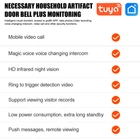 Product Description APP: Tuya Main control processor: Botong BK7252 Image sensor: GC0328 Recording resolution: 640 * 480 Visual angle: 85 ° Storage encoding: JPEG Push photos: supported Audio information: built-in speakers, microphone WIFI mode: 2.4GHz 802.11b/g Night vision type: infrared night vision Power supply information: DC5V/2A Working temperature: -10 °~60 ° Working humidity: 10%~90% TF card: supports up to 64G [not included] Product battery model: with 18650 * 2 batteries Product color: white Door bell weight: approximately 175 grams Product size: approximately 12.5 * 5cm Battery life: Approximately 1-6 months [combined with usage] Battery capacity: 4600 mA Charging duration: 2-4 hours Note: 1. Due to transportation issues, the product battery may have undergone insulation treatment. Please tear it off before use 2. If the product requires the installation of a memory card, please choose a new card or a formatted C10 or higher model, or a TF card within 64G, which is not included in the product. The installation position is at the upper end of the battery compartment and is pressed and inserted 3. The product comes with two fixed bases, which can be installed according to your actual situation 4. The product requires 2.4G network support and should be installed in a location with good signal as much as possible 5. If you press the doorbell and Dingdang does not respond when powered on, (1) it eliminates the distance between Dingdang and the doorbell, (2) it can be paired again. Insert Dingdang into the power and press the function button of Dingdang once. When Dingdang has a long red light, press the doorbell once. When Dingdang rings, it indicates successful pairing Operation installation: 1. Choose a location with good network signal for the product, and the doorbell and jingle should not be too far apart 2. Choose a suitable base. The product is equipped with two bases, one at an angle and one at a straight face 3. Scan the code to download the app, register an account, open Bluetooth on your phone, and click on the app to enter 4. Plug in the Dingdang power and press the doorbell to activate it. When the Dingdang rings, click on the search device in the app and see the doorbell, click on Connect 5. After successful binding, it can be used normally 6. If you need to add a memory card, please install it on the top of the battery compartment with the power off, and it can only support up to 64GB Product List: Doorbell * 1 Base * 2 Film * 1 Charging cable * 1 18650 battery * 2 Installation package * 1 Instructions * 1 Payment We accept PayPal only. If buyer want to delay the payment because of financial problem, please contact me by the ebay message within 3 days Payment via PayPal (PayPal accepts all major credits/debit cards and eCheque) ECheque payment will tak e 3-10 days to get clear, thus DELAYing the shipment. Shipping Handling time: 1 business day (Orders are not processed on weekends & holidays) Tracking information will be sent once item is shipped. Local pick-up is unavailable at the moment. For international shipping and shipping to Guam, Hawaii and Alaska, Please contact us before placing the order. Item is shipped to ebay address. Leaving correct address can minimize delay. Terms For any issues with Defects, Return, Item Exchange request, please contact us first and send us a message first before opening any type of case or request. We devote ourselves making EVERY CUSTOMER in 100% Satisfactory and resolve any problem. We highly value and appreciate your business. Thank you. No returns will be accepted without an RMA number. Please contact us for the RMA number. Return is acceptable within 30 days of delivery. Return for replacement or money back is optional. Returned items must be in the brand new, unaltered and resalable condition. Seller is not responsible for any labor cost, expense in a dealer store, or damage due to wrong installation. Returns Return is accepted within 14 days after the buyer's receiving the item. (Excluding contrived damagement or misusage).100% money-back Guaranteed! All product will be tested in 100% before delivery.If the item is defected by the processing of postage,Buyer has up to 14 days from date of receipt for exchange of a new one.All shipping charges for returned products are to be paid by the buyer,Please contact us for the return address Contact Us All messages will be answered within 24 office hours. Please contact us either by clicking "contact seller" in the "purchase history" section or simply click "ask a question" at the bottom of this page. If you are unsatisfied with our item or service, please contact us before leaving any feedback. We are committed to resolve all issues in a friendly and satisfactory manner. We always reply to messages within 2 business days (off-duty at weekend). If you do not get a response from us, then please check your junk or spam mailbox. powered by