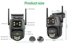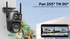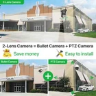 Dual-Lens with Dual Screen Auto Tracking PTZ WIFI Camera Dual lens, Dual screen, Notifications alarm, humanoid tracking, two way voice intercom 360 monitoring, full color night vision, IP66 waterproof, mobile phone remote monitoring,Share video, SD card storage, 24 hours video recording Main Features: - Dual lens camera. Top Lens is 3.6MM; Bottom Lens is 3.6MM - Dual-lens dual-sensor dual-screen, wide-angle Viewing + Long Distance Viewing to achieve clear monitoring from far and near; - Dual light source design, built-in infrared light + white light, night vision infrared and night vision full color can be set; - Pan Tilt Move: Bottom Lens: Horizontal: 355 degree; Vertical: 90 degree. - 2.4G WIFI + RJ45 network port for Internet access; - Support TF storage and cloud storage (need pay in iCSee app); - Two-way voice intercom, two-way video synchronous recording and playback - Humanoid detection Smart Alert: Motion Triggered with Alarm, APP Push notifications and Alarm recording - Auto Tracking: When ip camera detects object moving, it will auto move follow the object. -Smart Phone APP name: "iCSEE" from Google Play or iOS APP Store One camera, double the performance An instant connection 99% reduction in connection failures. Modernized antenna, powerful signal Equipped with external high-gain enhanced 5dBi antenna, your camera can receive a wider range of signals. Various Installation Methods Camera supports side mounting and ceiling mounting, you can install it according to your needs Dual Lens and Dual Screen There are 2 video screens in APP, the upper one is fixed position camera and the lower one is PTZ camera. AI Auto Tracking When someone passes through the protected area, the camera will detect the person's movement and follow the person. 355° Pan & 90° Tilt Rotate Due to the horizontal 355° and the vertical 90 °, you can remotely control the wifi outdoor camera to view every corner via your mobile phone. IP66 Waterproof / Dustproof The camera is equipped with IP66 case , which is waterproof, sun-proof and dust-proof. It is suitable for any environment. You might need to buy such a extention cable, please click on the picture below to learn about the product. Please note the cable is not included!!! If the installation place is not near to the power supply, maybe you need this extension cable. Smart Night Vision Built -in White LED and IR LED, you can choose color night vision or infrared black and white night vision. 4MP 8MP Comparison 4MP camera version:Means that the single lens is 2MP, so the dual-lens is 2MP+2MP=4MP. 8MP camera version:Means that the single lens is 4MP, so the dual-lens is 4MP+4MP=8MP. Real Two Way Audio Built in microphone and speaker,support real time video,which allows you talk with your visitor in real time wherever you are. Support TF Card Storage and Cloud Storage(Need Pay For) The camera supports up to 128GB TF card local backup and also provides cloud storage service(Need to pay extra cost). NVR with ONVIF compatible 2.4Ghz Wifi Connection & LAN Connection Powered by DC 12V adapter, you can connect the camera to Wi-Fi network. you can setup wifi connection of the camera or LAN Search with network cable connected to router, work with 2.4G wifi only (Does not support 5G). ICSEE App Remote Access You can get a live broadcast of the capture video anytime, anywhere. Supporting Multiple Users watching live video at the same time via phone APP. Packing List: 1x PTZ Camera 1x User Manual 1x Power Supply 1x Screws Bag