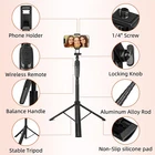 Wigearss 1.6M Selfie Stick Tripod Stand Phone Tripod with Remote Can be Used in Combination with Face Tracking Phone Holder Compatible with Android iOS (Face Tracking Phone Holder not Included) Product Details Color: Black-Tripod Brand: Wigearss MPN: Wigearss 1 EAN: 4895232021864 UPC: Does not apply Brand: Wigearss Color: Black-Tripod Compatible Devices: Smartphone Special Feature: Remote Control Material: Plastic Maximum Height: 1.6 Millimeters Tripod Head Type: Gimbal Heads Minimum Height: 9.3 Centimeters Folded Size: 29.2×6.9×4.5cm Manufacturer: Wigearss Package Dimensions: 12.28 x 4.8 x 2.01 inches Item Weight: 10.9 ounces Item model number: Wigearss 1 Date First Available: December 21, 2023 Manufacturer: Wigearss Country of Origin: China Sturdy and Durable Construction: Crafted from high-grade aluminum alloy and ABS plastic, this selfie stick tripod stand is built to last. Its robust design is ideal for daily use, reliably supporting your photography and videography needs. Adjustable Telescopic Pole for Versatility: Extendable up to 148.8 cm, the telescopic pole adjusts to suit various scenarios. Whether it's for drama watching, photo taking, video shooting, or live broadcasting, this tripod offers the flexibility you need. Professional Cardan Shaft for Optimal Orientation: Featuring a professional cardan shaft, the tripod enables seamless transitions between horizontal and vertical screen modes. Capture every scene just as you envision, with smooth and effortless adjustments. Secure Mobile Phone Clip with Anti-Slip Design: Equipped with an anti-slip silicone pad, the mobile phone clip securely holds your device, stretching up to 9.3 cm to accommodate most smartphones, even with cases. Rest assured your phone stays firmly in place. Convenient and Portable with Bluetooth Remote: This user-friendly selfie stick tripod includes a detachable Bluetooth remote control, making group photos and selfies a breeze. Its compact size (29.26.94.5cm) ensures easy portability, ideal for travelers and on-the-go photographers. Descriptions: Sturdy Construction: This selfie stick tripod stand, made from high-quality aluminum alloy and ABS plastic, its robust construction ensures it can withstand the wear and tear of daily use, making it a reliable accessory for capturing life's moments. Adjustable Telescopic Pole: The tripod features a telescopic pole that can extend up to 148.8 cm. Whether you're watching dramas, taking photos, shooting videos, or live broadcasting, this tripod is suited for a multitude of scenarios. Professional Cardan Shaft Design: Equipped with a professional cardan shaft, this tripod stand allows for smooth and easy switching between horizontal and vertical screen orientations, ensuring that you capture every scene exactly as you envisage. Secure Mobile Phone Clip: The mobile phone clip is designed with an anti-slip silicone pad, providing a firm and secure grip on your device.It can stretch up to 9.3 cm, accommodating most smartphones with or without a case. User- Friendly Design: This selfie stick tripod comes with a detachable bluetooth remote control, simplifying the process of taking group photos or selfies. It's conveniently portable, with a compact storage size of 29.2×6.9×4.5cm, making it perfect for travel. Support system : Android,IOS,Harmonyos Package includes: 1x Selfie Stick Tripod Stand 1x detachable Bluetooth remote control 1x built in CR1632 battery(Bluetooth Remote control) 1x Manual Notes: This product does not contain the fill light.