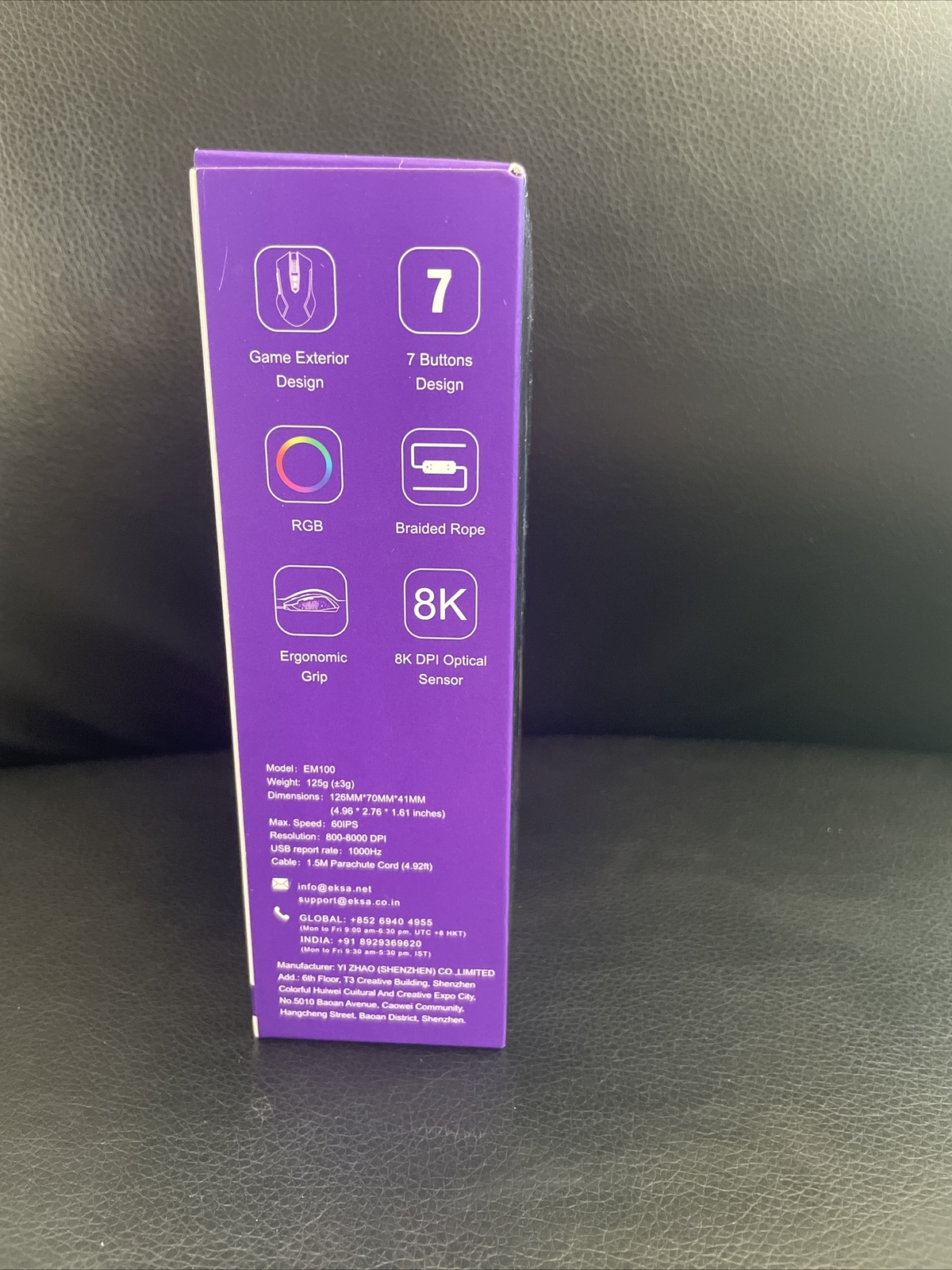NEW UNUSED EKSAS EM100RGB Gaming Mouse. Slightly damaged box, never used