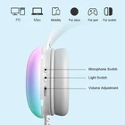 Gaming Headset Over Ear Headphones with Mic Wired Headphones with LED Lights Gaming Headphones Compatible with PS4 PC Laptop Feature: 1. Outstanding Audio Quality: Featuring 50mm drivers with a frequency range of 20Hz-20KHz, these wired headphones deliver clear audio details and powerful bass, providing a realistic sound experience that enhances immersion in games. 2. Clear Voice Transmission: Equipped with a high-sensitivity microphone with a sensitivity of 102±3dB, this gaming headset ensures your voice is transmitted clearly, making it ideal for team communication and voice chats. 3. Comfortable Wear Design: Made from lightweight PVC material and ergonomically designed, these gaming headphones ensure comfort during long gaming or work sessions, reducing ear fatigue. 4. Optimal Cable Length: With a 2.2-meter cable, these over ear headphones offer ample mobility, allowing you to move freely at your desk without cable constraints, enhancing gaming flexibility. 5. Dynamic LED Lighting: The wired headset features multicolor LED lights, creating an immersive audiovisual experience suitable for gaming, parties, and various occasions, adding to the enjoyment of use. Specification: Origin: Mainland China Material: PVC Microphone size: 6.0x5.0mm Cable length: 2.2m±0.15 Sensitivity: 102±3db Frequency range: 20Hz-20KHz Working current: ≤180mA LED working voltage: DC5V±5% Driver unit: 50MM Size: 190.00x160.00x90.00mm/7.48x6.3x3.54inch Note: Due to different monitor settings and lighting conditions, the actual color of the item may vary slightly from the pictures. Thanks for your understanding! Please allow a 1-2 cm difference in measurements due to manual measuring. 1 x Gaming Headset 1 x Audio Cable 1 x Instruction Manual