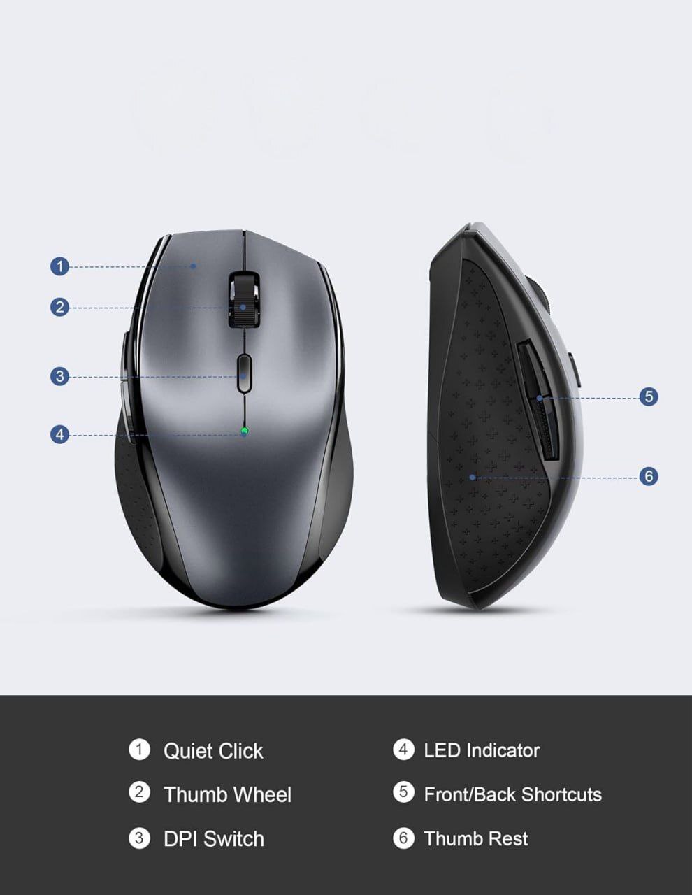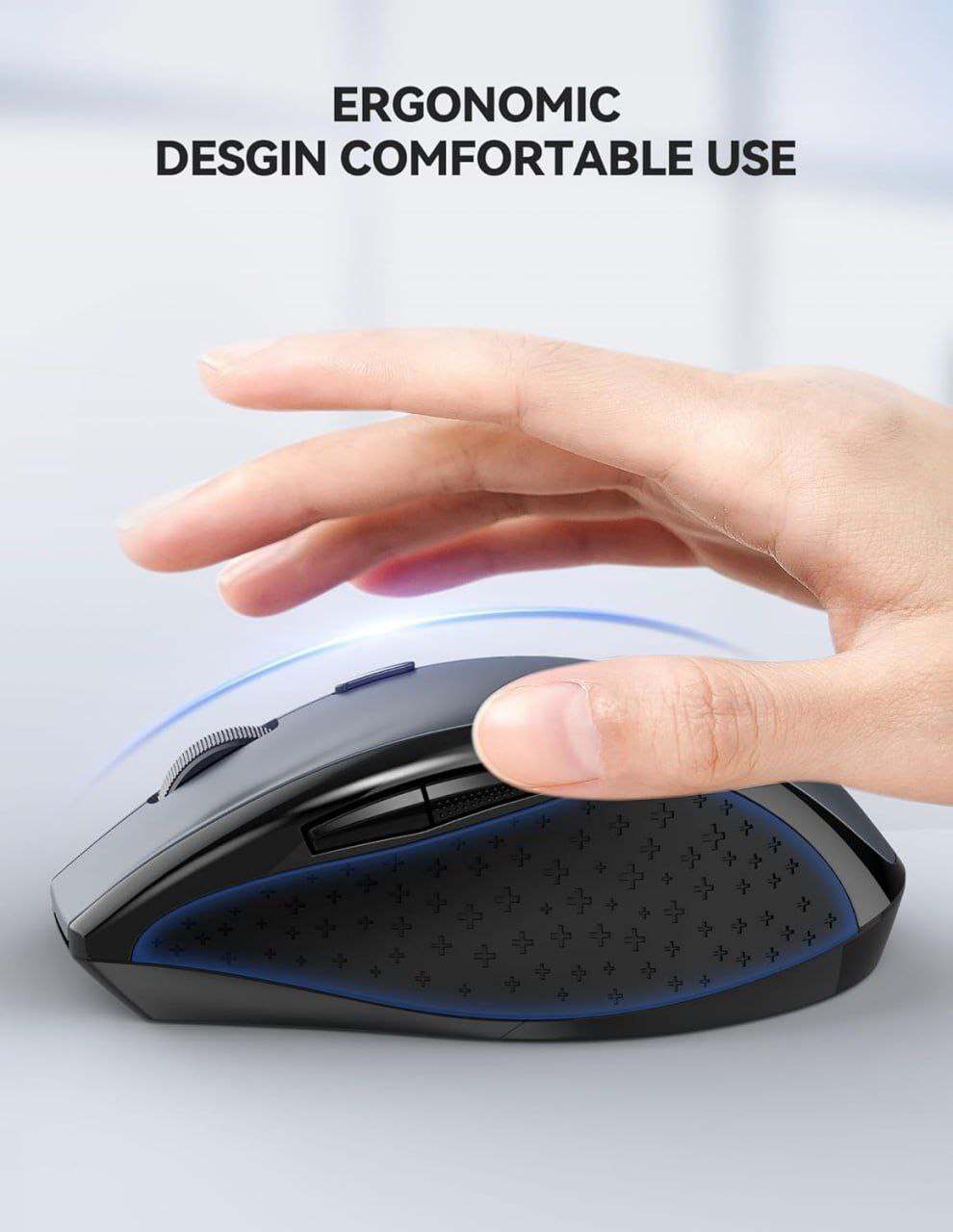 【Silent & Portable】 wireless mouse achieves optimal fit and comfort, the portable design makes it easy to store in a travel bag, computer mouse has silent click supports use in public places such as libraries, coffee shops, offices, etc. 【30 Months Battery Life】wireless for laptop mouse has Intelligent sleep mode can better extend battery life. It will enter auto sleep mode if you don't use laptop mouse for 5 minutes to save battery and just click it the mouse will enter working mode again. 【Plug & Play 】2.4 GHz wireless provides stronger anti-interference ability, a faster transmission speed and a more reliable connection, 4800 DPI ergonomic optical mouse can make it track more smoothly over most surfaces. 【Wide Compatibility】 the USB mouse is compatible with Windows11,10,8.1,8,Vista 7,XP, Mac OS (Side buttons are not available), and Linux. wireless mice works with Notebook, Chromebook, PC, Laptop, Computer, and more. 【36 Months Warranty】If you encounter any problems in using cordless mouse, please feel free to contact our professional customer service team, enjoying 36-Month Warranty (Registered Only) Product information: Color Blue Connectivity Technology USB Special Feature Wireless Movement Detection Technology Optical