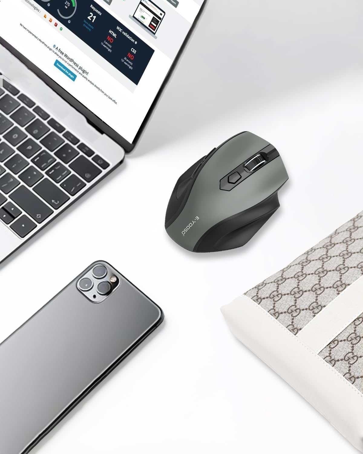 Wireless Mouse, 2.4G USB Computer Mouse with 5 Levels 4000 DPI, 18 Months Battery Life, Ergonomic Grips, 6 Buttons Large Optical Mouse for Laptop, Mac, PC, Chromebook, Notebook (Gray) 【PLUG AND PLAY, NO DELAY】: No need to install drivers, 2.4GHz wireless provides a powerful and reliable connection up to 33ft (10m), which eliminated delays, interference. Easy and convenient (USB RECEIVER is stored at the back of the mouse) 【5 LEVELS DPI & 6 BUTTONS】: E-YOOSO wireless mouse has a 5-Level adjustable DPI (800/1200/1600/2400/4000), which provides more sensitivity than standard optical mice for smooth and precise. Extra 2 Side Buttons ideal for both work and gaming 【ANTI-SWEAT & ERGONOMIC】: The Mouse for big hands is made of anti-slip and anti-sweat material, large size design, built with a comfortable contoured shape that naturally fits hands. The finger rests on both sides of the mouse provide additional support 【AUTO SLEEP MODE DESIGN】: Being impressively easy to use, this big wireless mouse also keeps energy efficiency in mind. It will enter auto power-saving after 1 minute of idling, or sleep mode after 8 minutes of idling. Double click any keys to wake up 【UNIVERSAL COMPATIBILITY】: The Large wireless optical mouse is long-lasting and versatile. Portable for travel use. Work with Windows laptop/MacBook/Chromebook/PC -Any Device with USB Ports. Side buttons are unavailable for Mac OS 【LONGER BATTERY LIFE】: This ergonomic wireless computer mouse is powered by 2 AA batteries which can last 18 Months battery life (Batteries not included) Product Description 1 Durable Design 2 Plug and Play 3 33FT/10M 4 Anto-Sleep, Long Battery Item model number E-1141 Color Gray Product Dimensions 4.9 x 3.38 x 0.1 inches Country of Origin China Batteries 2 AA batteries required. Item Weight 3.2 ounces Connectivity Technology 2.4GHz USB Wireless Movement Detection Technology Wireless, USB, Optical Special Feature Large, Wireless, Portable, Touch Scroll, Comfortable, Ergonomic Design, Auto-Sleep Shipping Fast shipping is very important for us. Our standard US shipping service is FREE. Your order will be shipped within 2-3 business days upon full payment received. Your order will be delivered within 2-3 business days after the handling time. We only ship to the confirmed PayPal address. We reserve the right to cancel any order for any reason at any time. We are not responsible for undeliverable addresses. Returns and payment We offer a 30 days return policy from checkout winning date. FeedBack Your feedback very important to us, after you get your package and you are satisfied with our service please leave us positive feedback If you have any problem with your order / any questions please before leave any type of feedback For any questions, using eBay contact system Please visit our eBay store to check out other items for sale! Thank you for shopping at our store.