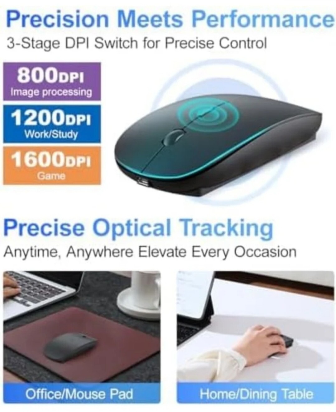 -Wireless Mouse 2.4GHz with USB Mini Receiver Mouse, Computer Mouse -Sleek, slim, and lightweight – our mouse is designed to fit your on-the-go lifestyle. Simply slip it into your laptop bag or pocket, and you're ready to work on the move. -Designed with silent click technology, this mouse allows you work in peace without disturbing people around you. -Its ergonomic design caters to both left and right-handed users, ensuring a comfortable grip and effortless control for everyone. -Receiving Tange: Up to 33 Feet -DPI: 800/1200/1600 -Size: L,W,H : 4.33 Inches -- 2.24 Inches --.83 Inch -Inside Box You will Recieve: Mouse, USB Charging Cables, Nano Receiver, English Instructions -Brand New , Never Used -MSRP: $25