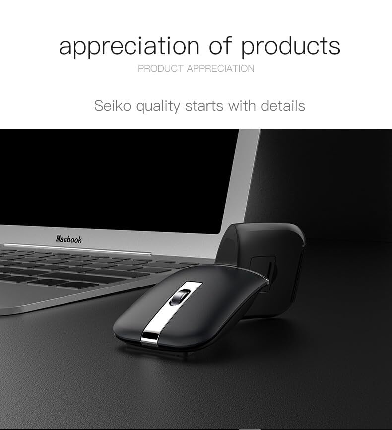【DUAL CONNECTION MODEL MOUSE】 This rotary wireless mouse has dual mode connection. Bluetooth 4.0 brings fast response, accurate movement, stable connection and smoother tracking. The Bluetooth/2.4GHz wireless mouse can work on two devices. Connect one device via Bluetooth and the other via a 2.4GHz USB receiver. Simply switch between the two devices. You can switch and control two devices freely with only one mouse. 【Muted Click】Upgraded optical sensor, smooth and fast response offer you a better online time. The Left and right button silent design makes you work or play in a quiet environment, and won’t disturb others when you are at home or in the office. 【ULTRA THIN AND PORTABLE】Arc design fits hands curve. Takes small space after rotating, lightweight and mini compact design occupies less space on your desk. And can be easily put in your pocket or travel bag. 【RECEIVER】Flexible and convenient, plug and play receiver, wireless transmission distance: ≥ 10 meters (33 feet). When the receiver is disconnected or the computer is powered off, the arc mouse will automatically turn off (Note: USB receiver is stored on the back of the mouse) 【ENERGY SAVING】The mouse has a built-in lithium battery and provides a charging function,no more need for extra AAA battery, It adopts a unique intelligent circuit management design to make the mouse more intelligent and save power. It can last for 15 hours after being fully charged.