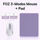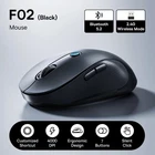 F02 Ergonomic Bluetooth 5.2 & 2.4G Wireless Mouse ----------------------------------------------------- ① Ergonomic Design ② Bluetooth 5.2 & 2.4G Wireless ③ Customized Shortcut Function ④ 4000DPI High Sensitivity ⑤ 7 Mute Buttons ⑥ LED Power Indicator Connect 2 Devices Simultaneously Support Bluetooth 5.2 & 2.4G wireless dual mode. ① Bluetooth 5.2 For phones, tablets, laptops with Bluetooth. ② 2.4G Wireless For laptops, PC, desktops with USB port. Stronger Bluetooth 5.2 Chip Better resistance to electromagnetic interference, improved stability with ultra-low latency for smooth to use. 4000DPI High Sensitivity Tracking Five adjustable DPI levels, one-click easily switch Ergonomic Design, More Comfortable to Use Perfectly fits the curvature of the palm, so you won't feel sore after long-time use. 7 Mute Buttons, Convenient Operation • Scroll wheel • Left button / Right button • Forward button / Back button • Customized shortcut button: back to desktop/screen lock/mute/screenshot • ON/OFF button / Mode switch button • DPI adjustment button / Bluetooth pairing button • USB receiver • Battery compartment 30dB Silent Clicking No clicking sound, help you focus on work and not disturb others. Unique Customized Shortcut Button Connect to the APP can customize your own shortcut function for work more efficient. Shortcut Function: back to desktop, screen lock, mute, screenshot. (Note: Download the APP and link the mouse to it to set up, the default setting is "Back to Desktop") LED Power Indicator Low battery automatic alert to avoid the embarrassment of suddenly running out of battery at work. ① Lights up blue: Battery level >10%. ② Lights up red: Battery level ≤10%. 10M Transmission Distance Intelligent Sleep Mode Automatically sleep when you're not using it to extend the battery life. (Note: Click or move the mouse to wake it up) Focus on Every Detail ① Smooth 3D Scroll Whee Provides excellent tactility and fast response. ② Pure Teflon Non-Slip Pad Moves smoothly and wear-resistant, quality 3M tape sticks tight. ③ Skin-Friendly Wrist Rest TPU material, fine particles design for better grip. Win & Mac Systems Compatible Applicable to a variety of systems, no need to install the driver, simple operation. Connection Steps for Two Modes ① 2.4G Wireless Connection 1. Insert the battery 2. Plug USB receiver into device 3. Switch the mode to 2.4G 4. Click and move the mouse ② Bluetooth 5.2 Connection 1. Insert the battery 2. Switch the mode to Bluetooth 3. Press the DPI button for 2 seconds 4. Turn on your device's Bluetooth 5. Connecting "F02Mouse" 6. Click and move the mouse (Note: The battery is not included in the package) Choose the Colors for Your Own Style Specifications • Name: FO2 Ergonomic Wireless Mouse • Model No: BS-FO2 • Material: PC+ABS • Color: Baby Pink, Moon White, Cluster Black • Weight: About 90g (without battery) • Transfer Distance: About 10m • Connection Type: 2.4GHz wireless+Bluetooth • Bluetooth Version: Bluetooth 5.2 • Sensitivity: 1000, 1600, 2000, 2400, 4000DPI • Response Frequency: 250Hz • Operating Systems: Windows, Harmony OS, Apple OS, Linux, Vista, etc. Package Including F02 Mouse *1, USB Receiver *1 (Note: The battery is not included in the package) Easy Navigation with Comfortable Grip ① 30dB Quiet Button Enjoy a quiet clicking experience without disturbing others. ② Ergonomic Design Contoured shape with skin-friendly material offers a much more comfortable experience with the mouse. ③ Customizable Button Customize the shortcut functions as you will for more efficient work. ④ Bluetooth & 2.4GHz Connection Compatible with multiple devices for smooth and stable connection. ⑤ DPI Adjustable 1000-4000 DPl settings for various needs.