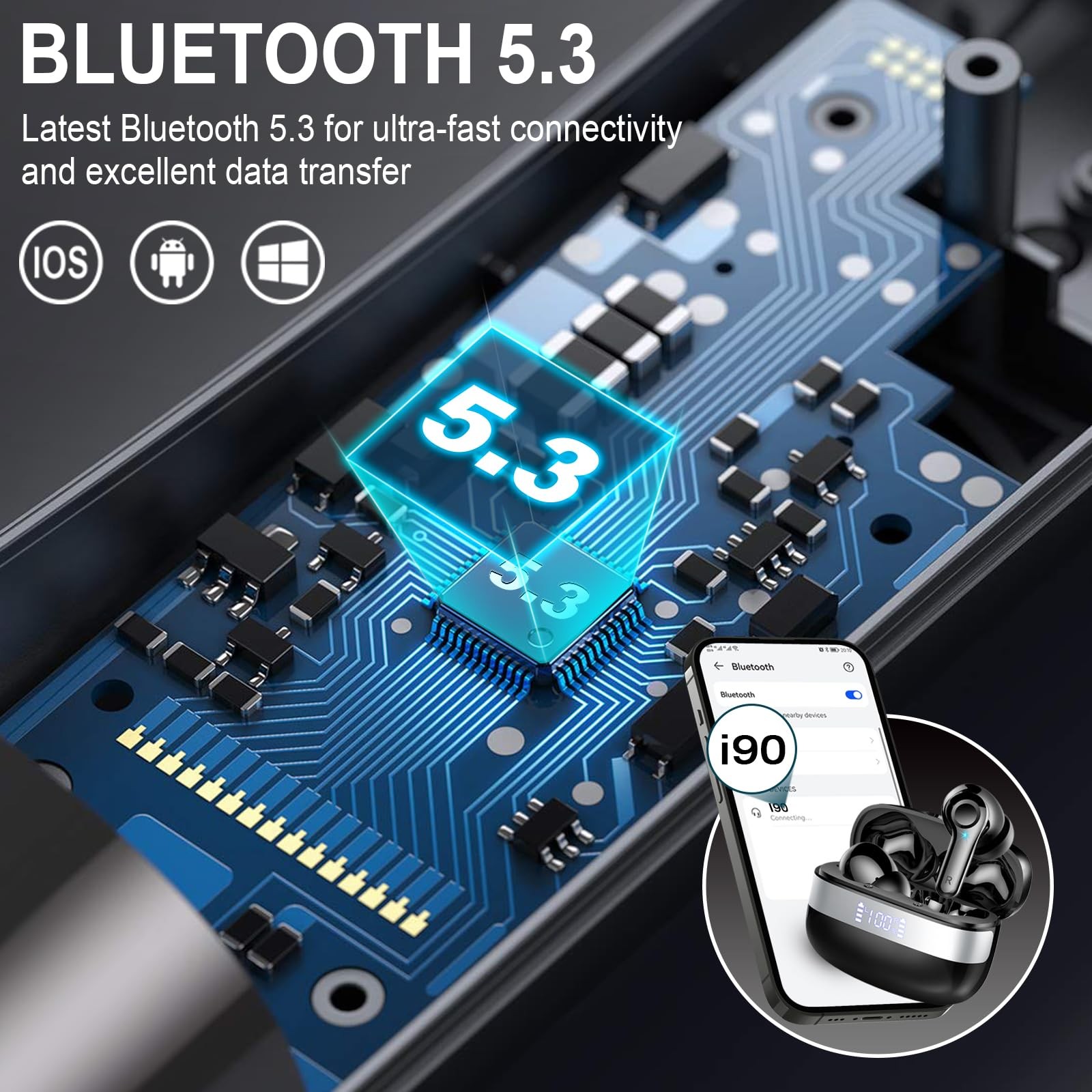These wireless earbuds are a game-changer! The Bluetooth 5.3 connection is super stable with no lag, and the sound quality is amazing—deep bass and crisp highs. The ENC noise cancellation works great, even in noisy places. Super comfortable fit, easy pairing, and the battery lasts forever. Perfect for calls, music, and workouts. Love them!
