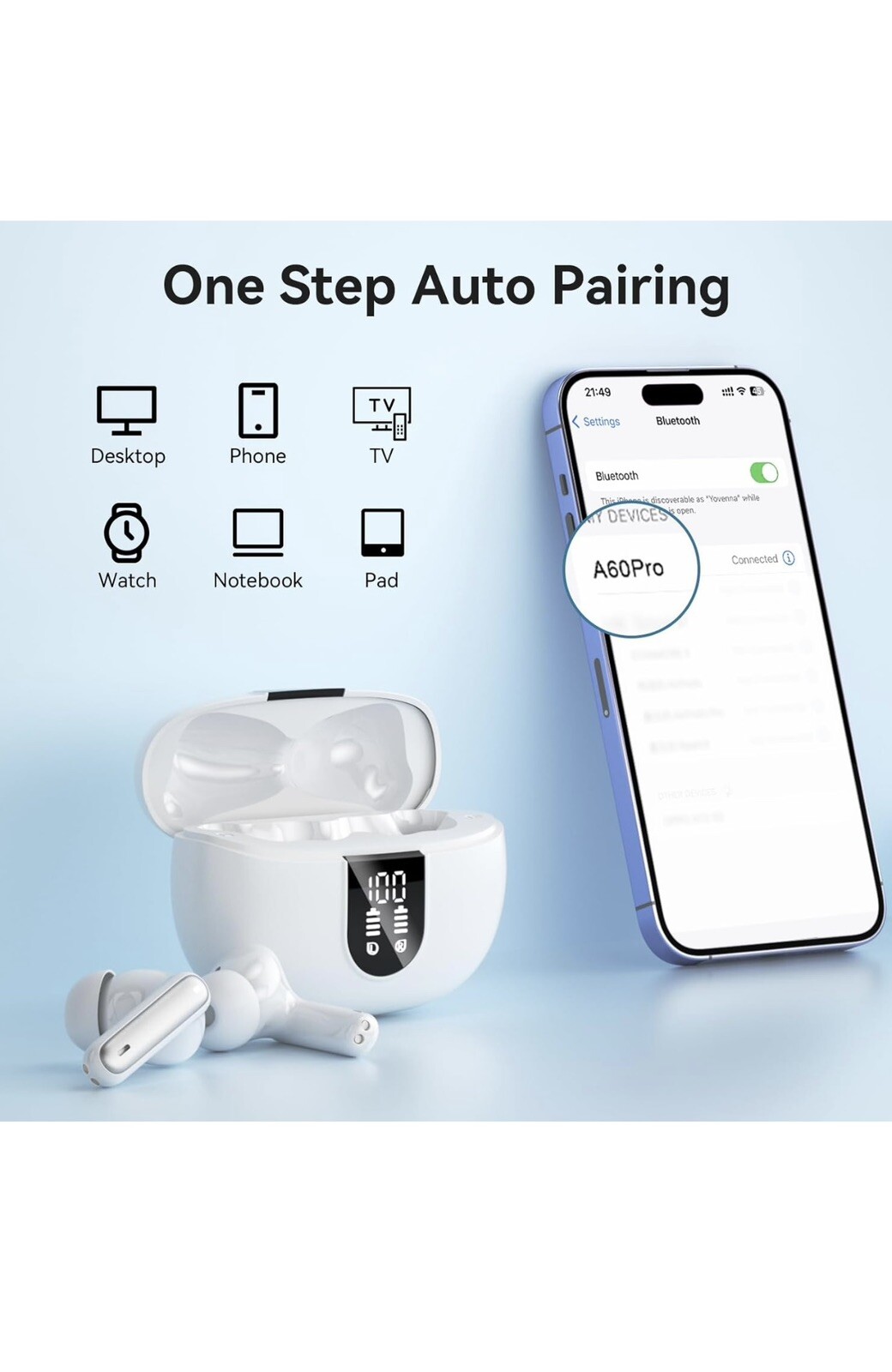 Brand MoBadeety Color White Ear Placement In Ear Form Factor In Ear Noise Control Sound Isolation Headphones Jack Type-c 【LED Battery Display & 40 Hours Playback】: This Bluetooth earbuds have a smart dual digital LED display design, which allows us to easily monitor the battery power of the earbuds and charging box. The wireless in-ear headphones can be used for 6-8 hours on a 1-hour charge, and can be charged an additional 4 times when combined with the charging case, for a total playtime of 40 hours. The USB-C charging cable ensures fast charging. 【Bluetooth 5.3 & One-Step Pairing】: Wireless headphones have advanced Bluetooth 5.3 technology, supporting HSP, HFP, A2DP and AVRCP, which can provide you with faster transmission and more stable connection. There is almost no lag. After first connection, these earbuds wireless bluetooth will connect with your device once you open the charging case, it does not require manual matching connection. You can use it anytime, anywhere. 【Stereo Sound & Noise Canceling】: The wireless earbuds adopts a unique stereo design, 13mm speaker driver and built-in AAC/SBC codec chip, which can provide powerful bass, stunning treble and clear mid-range. It will bring you live-level music enjoyment. Wireless headphones bluetooth has ENC noise-canceling dual microphones, which not only effectively eliminate 80% of background noise during calls, but also ensure that your voice is captured accurately and clearly. (NOT ANC) 【Smart Touch and Ergonomic Design】: Call noise canceling headphones has a sensitive touch panel, which is flexible and smart. You can touch to control the phone, such as music switch, volume adjustment, calling and switching music. This earbud headphones is equipped with 3 different sizes of ear tips (S/M/L) and a shape design that conforms to the contour structure of the human ear, which can give you a comfortable wearing experience. 【IPX7 Waterproof & Lightweight】: IPX7 waterproof rating. Call noise cancelling earbuds are covered with nano-coating, which not only effectively prevents water and sweat from penetrating, but also prevents moisture in the air from damaging components. The wireless Bluetooth headset is compact and lightweight, it is suitable for running, yoga, cycling, commuting and work. Wireless earbuds are widely compatible with iOS/Android/Windows systems.