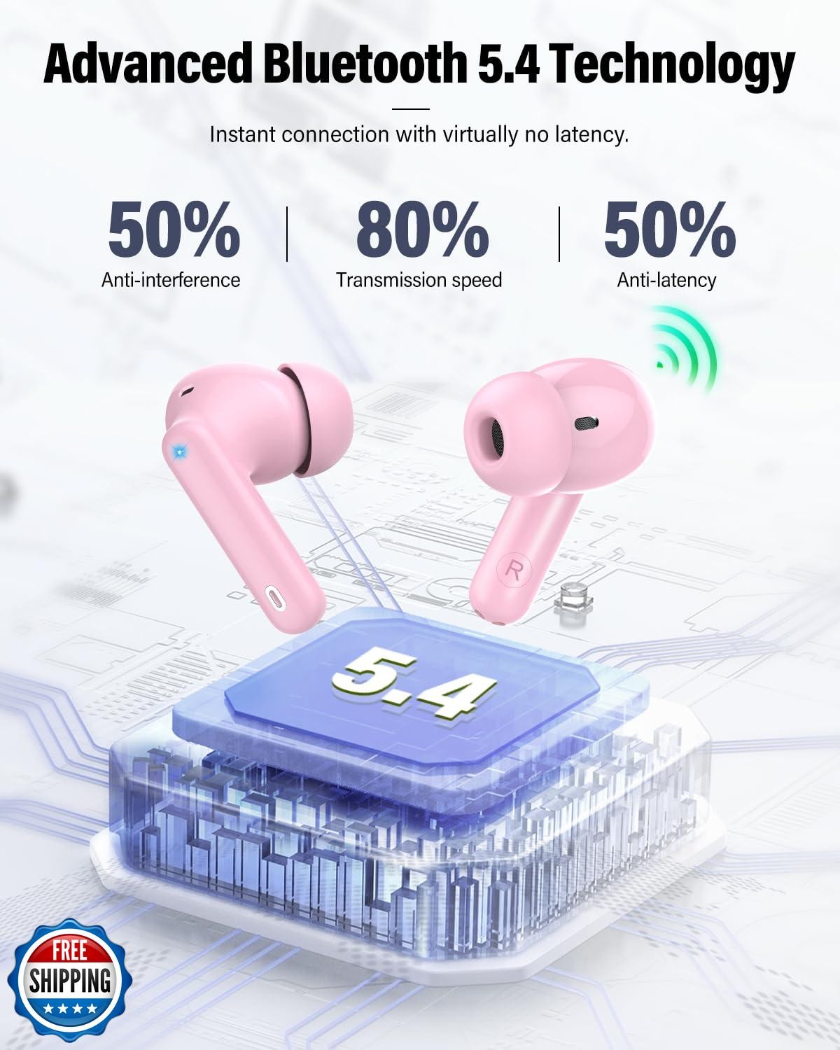 Wireless Earbuds, Bluetooth 5.4 Headphones Bass Stereo, Ear Buds with Noise Cancelling Mic, IP7 Waterproof in Ear Earphones, 36H LED Display Bluetooth Earbuds for Laptop Pad Phones Sports, Pink Features 2025 Bluetooth 5.4 Technology : The wireless earbuds use the bluetooth 5.4 chipset. There is a faster and more stable signal transmission and has successfully achieved low latency without interruption. With a range of up to 15 m, whether you are at home, in the office, or on the road, you don't have to worry about disconnection of the bluetooth earbuds. Automatic pairing & compatible with multiple devices. More Outstanding ENC Noise Reduction : The wireless headphones adopts dual 14.2mm low-distortion composite dynamic drivers with high resolution decoder built-in and AAC&SBC audio coding technology. In addition, the ENC calling noise cancellation technology brings a clearer sound to your calls, giving you a whole better feeling, everything from the A90 noise cancelling earbuds. LED Power Display : The LED display on the charging case shows you the charge level of the case as well as the wireless earphones, so you can precisely control the charge level of your headphones wireless for your convenience on the go. Simply tap on the earbuds wireless bluetooth to skip songs, play/pause music, answer/hang up phone calls, activate voice assistant, all without taking out your phone. 36 Hours and Faster Charging: The bluetooth earphones offer up to 6-8 hours of usage on a single charge, with the charging case supporting up to 30 hours of usage, ensuring all-day usage. The wireless bluetooth headphones feature a Type-C charging port, providing a more stable and secure charging method, and significantly extending the battery life of the noise cancelling headphones. Ergonomic IP7 Waterproof Design : With ultra-light Nano coating, the headphones with mic reach IP7 waterproof grade, dust and rain proof, the extreme lightness, the in-ear design in line with the shape of human ears, and the softer silicone ear cap, make you feel comfortable in any scene and can only hear your own music, all from this true wireless ear buds. Shipping Free & Fast Shipping: We offer free shipping to most of the USA with a normal delivery time of 3-7 days. However, due to the current situation, additional delivery time (up to 3 weeks) may be required for some items. Alternative Carriers: We may use alternative carriers (e.g., USPS, FedEx, UPS) to ensure your package arrives safely and on time. Due to the use of multiple carriers, we are unable to provide a tracking number automatically. Handling Time: Orders are processed and shipped within 1-2 business days of receiving cleared payment. Shipping Restrictions: Shipping to Alaska, Hawaii, Puerto Rico, Guam, and other US territories may incur shipping charges or delivery restrictions. Please contact us before ordering, or your order can be refunded/cancelled. State Restrictions: Certain items may not be shipped to California due to state regulations. Contact for Tracking Updates: If you require tracking updates or have any concerns about the delivery of your order, please feel free to contact us, and we will be happy to assist you. Return Policy 30-Day Hassle-Free Returns: If you are not completely satisfied with your purchase, you can return the item for free within 30 days of receiving it for a full refund or exchange. Easy Return Process: Contact us, and we will provide you with a prepaid return shipping label and detailed instructions. No Restocking Fee: There are no restocking fees for returns. However, the buyer is responsible for return shipping costs if the return is not due to a seller"s error. Refund Processing: Refunds will be processed within 1 business day of receiving the returned item in its original condition. Feedback Your feedback is extremely important to us. We strive to provide the best products and customer service possible. If you are satisfied with your purchase, please take a moment to leave us a positive review. If you have any concerns or issues with your order, please contact us before leaving negative feedback. We are committed to resolving any problems and ensuring your satisfaction. Contact Us If you have any questions or concerns, please feel free to reach out to our customer support team. You can contact us through the eBay messaging system. We are available Monday to Friday, 9:00 am to 5:00 pm EST, and we will do our best to respond to your inquiry within 24 hours. Thank you for supporting our small family business!