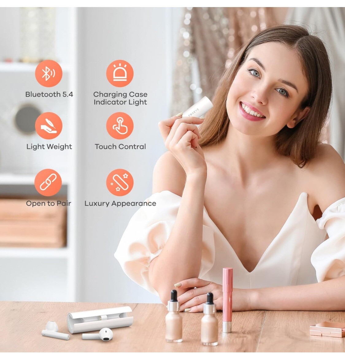 Wireless Earbuds, Bluetooth V5.4 Headphone, Touch Control Ear Bud with Charging Case, Noise Cancelling in-Ear Earphones with Microphone for Workout Sleeping White