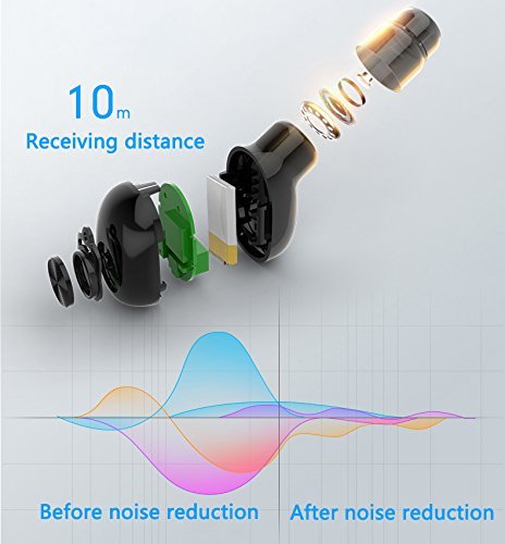 ★【BLUETOOTH 4.2 & EDR TECHNOLOGY】--Compatible with all Bluetooth-enabled devices. such as iPhone 5/6/7/8, Samsung Galaxy S5/S6/S7, iPad air, laptop, and other smartphones. Instantly connected to your smartphone or tablet from up to 33 feet away. ★【LONGER BATTERY LIFE WITH STORAGE BOX】--Equipped 700mAh battery in the portable magnetic charging box, which can support 14 times fully charging for the wireless earbuds. Never worry about low battery when you are out all day. And each earphone has Built in 60 mAh lithium polymer battery, enjoy about up to 8 hours of premium quality music playtime and 6 hours talk time after fully charged. ★【ADVANCED BLUETOOTH 4.1V AND STABLE SINAL TECHNOLOGY】--Support fast,easy pairing and stable connection with bluetooth device,up to 33 feet bluetooth range, it is great for hand-free talking and music. ★【MULTIPOINT CONNECTION】--At the same time connect 2 mobile phone. ★【MINI&LIGHTWEIGHT WIRELESS HEADPHONE】--Weight 0.14 OZ and dimension(L*W*H):0.78 x 0.55 x 0.47 inches only.Super lightweight with ultra mini and invisible design,you can enjoy your wireless earbud anytime and anywhere. Product description Color:Black How to Pair: 1.Before using the headset, please charge it first. 2.Press the multifunctional button of the headset for 3-5 seconds until you see the blue-red light blinking alternately , it will automatically enter pairing mode. 3.Make sure your phone's bluetooth function turned on, search headset model(BL1) on it. 4.Select the Bluetooth model and connect. Specification: - Bluetooth Specification: 4.2+EDR - Noise Reduction: CVC6.0 - Transmission Distance: 32ft - Battery: Lithium-ion Polymer 700mAh - Charging Time: 1.2 Hours - Playback Time: Up to about 8 Hours - Standby Time: 180h Package Included: 1 x Wireless Earphone 1 x Carrying Case 1 x User Manual 2 x Extra Eartips