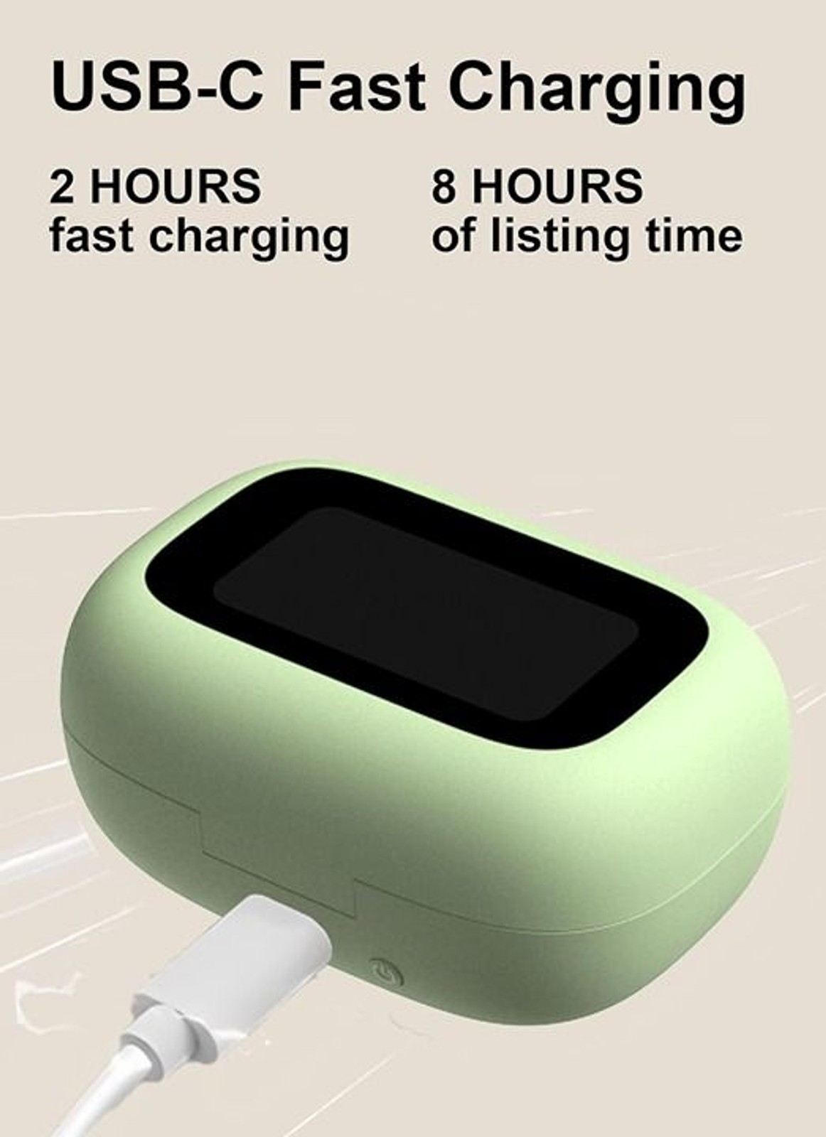 Wireless Earbuds, Bluetooth Headphone, Case with LED Screen, Compact Protective Shell, USB-C Fast Charging, Active Noise Cancellation, Green