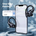 Bluetooth headphones wireless earbuds for Sports & Exercise; ENC Noise Cancelling; Visual Dual LED Power Display; Portable Charging Box; Adjustable & Flexible Ear hooks; 90 Hours Lasting Time; Stereo Sound with Deep Bass; Built-in Microphone for Calls; Over & in-ear Headset; One Button Control; IPX7 Waterproof and Sweat Resistant; Compatible with Cellphones, Desktops, Laptops, Gaming Consoles, Music Production Equipment, Tablets, Telephones etc; Secure Fit with ear loops and 3 Pairs of Ear Cushions; Suitable for hiking, running, cycling, motorcycling, skateboarding, snowboarding, business, callings, exercise, gym, fitness, yoga, workout. Extended 90 Hours Playback Ear Buds: Our C17 wireless earbuds boast a 70mAh battery, allowing up to 8 hours for continuous use (at 50%-60% volume) on a single charge. With the 600mAh large-capacity charging case, you can enjoy a total playtime of approximately 90 hours and keep grooving to your favorite tunes all day long. With an external digital LED display on the charging station, you will easily keep track of the battery level without opening the case and plan your charging accordingly Sports Comfort & IPX7 Waterproof Workout Headphones: Designed with elastic and soft ear hooks, these bluetooth headphones stay securely in place and provide ultimate comfort even during extended workout sessions. The sports earbuds come with three different sizes of ear tips, ensuring a perfect fit for various ear sizes. With an IPX7 waterproof rating, our wireless earphones effectively resist water splashes and sweat, making them ideal for sports, fitness, workouts, and running Impeccable Sound & Loud Call Bluetooth Earbuds: Equipped with 13mm speaker, the wireless headphones deliver well-balanced and exceptional sound, ensuring every note and beat is crisp and immersive. And the built-in microphone and snug fit design will effectively filter out noise during calls, guaranting seamless call quality for those important conversations on the go. Immerse yourself in crystal-clear audio and indulge in high-fidelity music with earbuds wireless bluetooth Bluetooth 5.3 for Seamless Pairing Over Ear Earbuds: Thanks to the advanced Bluetooth 5.3 technology, pairing and connecting to your device has been faster and easier. Say goodbye to any frustrating lag or connection drops. Just open the case lid, the wireless headsets will quickly connect with your device automatically (after 1st successful connection). And they are widely compatible with most Bluetooth-enabled devices including iPhone, Android, Windows, iPad, smart TV, laptop, tablets etc Effortless Charging & Intuitive Touch Control Headphones: The charging case provides two charging options - you can use the fast Type-C cable or go wireless with Qi-enabled charging pads (not included). The sensitive touch control feature provides a hassle-free user experience, you can stay in control of your audio experience with one-tap, making it easy to manage the music playback/volume/calls with a simple touch on the wireless ear buds, putting all the operation at your fingertips
