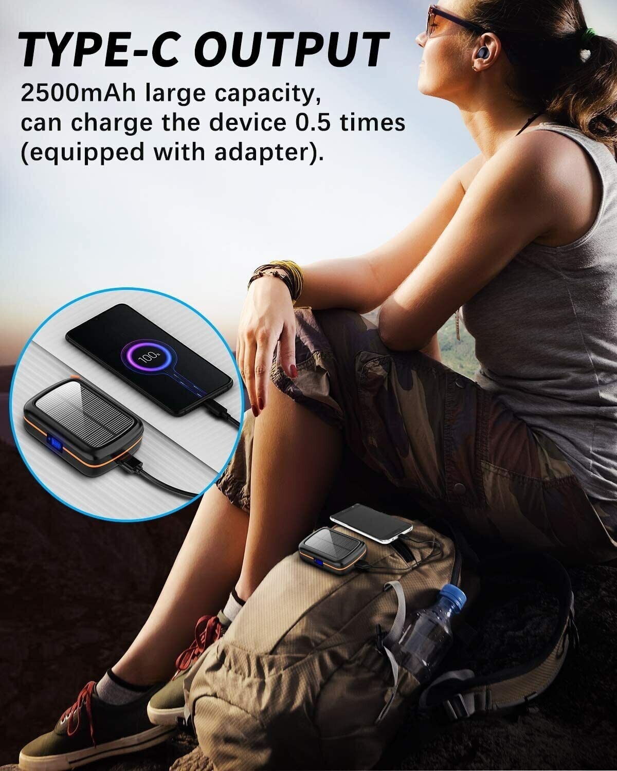 Wireless Earbuds, Bluetooth Headphones V5.0 Ear Buds 120H Playtime with Solar Charging Case Reverse Charging IPX5 Sweatproof Built in Microphone Deep Bass Earphones for Smartphones 120 Hours Playtime】Play time lasts for over 6 hours from single charge and total 120 hours with charging case. Built-in 2500mAh large battery, you can charge your mobile phone in case of emergency. 【Unique Solar Charging Case】The charging case comes with a 0.55W solar panel and a lanyard hole, which can be hung on the backpack to provide you with additional power. The IPX5 waterproof design is suitable for outdoor sports such as camping, outings, and hiking. 【Bluetooth 5.0】 The signal is stable and continuous, and the audio transmission is without loss of sound quality. It supports functions such as voice calls, music playback control, voice assistant wake-up, and is compatible with iOS and Android systems. 【Ultra-soft Comfortable Wearing】With ergonomic design and soft silicone earplugs, it is comfortable to wear and will not be tired for long periods of time. Comes with 3 sizes of earplugs to fit your size. Suitable for any scene and environment. 【IPX5 Waterproof Sports Design】 The earphone adopts IPX5 waterproof design, which is waterproof, sweatproof and rainproof. This workout earphone is perfect for running, yoga, gym, outdoor activities and long-distance travel.