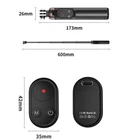 NEW-00023 Wireless Bluetooth Remote Control Selfie Stick for Gopro Hero 10 9 8 MAX Mobile PRODUCT DESCRIPTION Features: 1. Fits for GoPro Hero 10/9/8/Max and for Android/for IOS smartphone. 2. Wireless Bluetooth remote control can control shoot photos, video record and time-lapse photography. Control range is about 72 meters in an open area. The back of the remote control is magnetic and can be attached to the selfie stick, freeing your hands. 3. Green light is camera mode, red light is phone mode. Please turn off the remote control before shutting down. 4. Selfie stick come with a phone clip and for gopro interface. When taking a selfie with a mobile phone, you can switch between horizontal and vertical shots. 5. Stretch length 173mm to 600mm, wider framing range,high angle shooting. 6. Aluminum alloy rod, durable and non-slip. 7.Large angle tripod base,shooting without shaking. Specifications: 1.Closing size: 173±2mm/6.81±0.08" 2.Stretching length: 600±10mm/23.62±0.08" 3.Phone clip stretch length: 57-103mm/2.10-4.06 4.Remote control battery capacity: 65mAh 5.Remote control charging time about 2 hours, lasting time about 12 hours. Package includes: 1x Packing box 1x Selfie stick 1x User manual 1x Bluetooth remote control 1x Type-c cable 1x Phone clip 1x Locking screw 1x Screw for smartphone clip 1x Adapter Shipping Contact Us Our products have been sent to the US warehouse. All items will be shipped via WINIT CORPORATION. In 2-5 working days, you will receive your items. Thank you and have a nice day. If you have any question about us or items, please contact us, we will reply it as soon as possible. Shipping Our products have been sent to the US warehouse. All items will be shipped via WINIT CORPORATION. In 2-5 working days, you will receive your items. Thank you and have a nice day. Contact Us If you have any question about us or items, please contact us, we will reply it as soon as possible. PaymentShippingReturn policyAbout usContact us Copyright © - Tongtool All rights reserved | Design:Tongtool