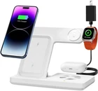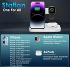 3 in 1 wireless charger iphone: A charging station for apple devices charging your Airpods, iPhone, and Apple Watch simultaneously. Compatible with iPhone 15 14 13 12 11 8 Pro Max Mini Plus X XR XS Max SE Plus, Apple Watch 8 7 6 5 4 3 2 SE, AirPods 2 3 pro pro 2 (Note: for Airpods 2 3, needs work with a wireless charging case ). It can also charge other phones with wireless charging capabilities. Fast Wireless Charging Station: To ensure fast and safe charging without damaging the devices, it's essential to use Quick Charger 3.0 (9V - 2A) fast power adapter and charging cable. It takes about 2-3 hours for a full charge. The phone charging output up to 15W, earbuds charging up to 3W, and watch charging up to 2.5W. Portable & Foldable Stand Design: The iPhone charging station is foldable, lightweight, and portable, suitable for carrying in bags or suitcases. This wireless charging stand is not only great for home and office use but also for travel and trips. Additionally, it serves as an adjustable-angle phone stand. Non-Slip, Case-Friendly, and LED Indicators: The iPhone charging station has anti-slip silicone pad to prevent devices from slipping. Our iPhone wireless charger supports cases with a thickness of ≤ 0.16 inches (4mm). Please avoid cases with metal rings, pockets, or magnets. Furthermore, the LED indicator shows green in standby, blue during charging, and blue-green flashing for foreign object detection (unable to charge). Safe Wireless Charging Base: This cell phone charging station features a dual-coil design that ensures a wider charging area in both landscape and portrait orientations. It incorporates overcurrent, overvoltage, over-heat protection, and foreign object detection. Thoughtful internal circuit design prevents overcharging and safeguards device battery health for a 3 in one charger