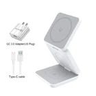 Magnetic Wireless Charger 3 in 1 Foldable Wireless Charging Station for iPhone 15 14 13 12 Pro Max Apple Watch 8 9 Charger Stand Support Phones : Only for iPhone 12/13/14/15 Series Phones. Support Watch: Only For Apple Watch Series 9/8/7/6/5/4/3/2/SE/Ultra/Ultra 2 (Not For Samsung Galaxy watch and other brand watches!!!) Support Earbuds : For all Qi wireless charging earbuds, Airpod 2/3/Pro/Pro 2/Galaxy Buds Live/Pro/Buds/Buds 2/Buds + etc. NOTED: Please use QC 3.0 adapter, 5V/1A adapter not suitable for this charger. Specification: Material: ABS+PC Interface: Type-C Input: 9V/2A, 12V/1.5A iPhone output: 15W/10W/7.5W/5W iWatch output: 3W Earphone output:5W Charging frequency: 110-205KHZ Size: 70x70x25mm Product certification: CE, ROSH, FCC