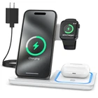 Product details Touch Control LED Light The stand will light up pleasant blue light when charging a cellphone, or blue light when charging the watch or the airpods, or in standby status. It can work as a night light. However, if the light bothers you, just tap the touch control area to turn it off. Fast Heat Dissipation The bottom of the wireless charger is equipped with heat dissipation holes, even if three devices are charged at the same time, it can ensure that the device will not damage due to overheating. Provide you with more comprehensive protection. Superior Safety Compatible with all wireless phones. This wireless charger uses the latest advanced automatic control technology. Built-in safeguards against overcharge, over-current and over-voltage protection, temperature control, foreign object detection. Vertical and Horizontal Charging You can place your phone on the stand horizontally or vertically to get charged according to your needs. There are heat dissipation-hole design and non-slip silicone pad on the stand to provide your devices a safe charging and prevent your device from sliding. No Cable Entanglement One type C cable and a QC 3.0 adapter are included in the package. With this 3 in 1 fast wireless charger, you can save many cables which can eliminate the clutter of the charging counter, free up 3 outlets for use and benefit during travel or driving. Specifications Name: 3 in I Wireless Charger Using: Type Foldable Colour: White Material: Plastic + Acrylic Charging Port: Type-C Input Current: 9V-2A,5V-3A Phone Output : 15W/10W/7.5W/5W Watch Output : 2.5W Headphone Output : 3W Adapter: >9V-2A,5A-3A Inch: 165*141.3*13mm Compatibility: Bluetooth headsets, Apple Watch Product List Wireless charger x1 Charging cable x1 Manual x1 Warmly Note if your devices fail to charge: 1. Make sure your devices support wireless charging function before using this wireless charger. 2. No need to install Apple Watch cable. The built in watch charger portion supports Apple watch only. Not for Apple Watch 1, Samsung watch, and other brand watches.� Not work for Apple Watch Series 7 of watchOS 8.3 version. 3. Not suitable for Airpods 1 or Airpods 2 without wireless charging case. If your Airpods 2 fails to charge, please check if it has wireless charging function. 4. Compatible with Airpods 2, Airpods Pro, Galaxy Buds, and other TWS earphones with wireless charging cases. 5. Phone cases with magnetic and metal attachments or cards will make the LED indicator flashing and prevent charging. Not compatible with OtterBox Commuter phone case. For silicone/rubber/plastic/TPU phone cases less than 5 mm thick only. 6. For a better charging experience, pls use the equipped QC3.0 Adapter to charge all devices. Don't charge the wireless charger with PC port, USB port from socket, or Apple 5V/1A adapter. 7. Place your devices right to corresponding wireless charging area when charging. If your phone is misaligned, or an incompatible adapter/cable is connected, the blue LED indicator will be flashing. 8. If your iPhone models fail to charge, it may be caused by the IOS bug (especially IOS 14.3). Please try to shut off or restart your phone to solve the issue. 9. iPhone 15/14/13/12 models feature built-in MagSafe system, interfering with the charging coils in the wireless charger and charge will be slower than other iPhone models. 10. If iPhone 15/14/13/12 Pro Max fails to charge, the reason might be that the size is too large to align with the charging area of the charger. You could try to charge the phone horizontally, wear phone case thinner than 5mm or without a protective case on. ?3 IN 1 WIRELESS CHARGING STATION? Our wireless charging dock can charge most phones, Apple Watch and Airpods simultaneously, just place them on the charging surface, enjoy fast wireless charging. Wide compatibility for all wireless Android and IOS devices, including iphone 15/14/13 Mini/13/13 Pro/13 Pro Max/12 Mini/12/12 Pro/12 Pro Max/11/11 Pro/11 Pro Max/XS/XS Max/XR/X/8/8P or Samsung Galaxy Series, iWatch 8/7/SE/6/5/4/3/2, AirPods Pro/3/2/1/Pro. A must device for apple fans. ?SAFETY FAST CHARGING? With over-current, over-voltage, over-temperature, short circuit protection, as well as foreign object detection function. 7.5W fast charging mode for iPhone 15/14/13/12/11/ Pro/ Pro Max/XS Max, XS, XR, X / 8/8 Plus. 15W wireless charging for Samsung Galaxy S23,S22,S21,S10, S10 Plus, S10E, S9 Plus, S9, Note 9, Note 8, S8, S8 Plus, S7, S7 Edge. Other wireless standard phones support 5W wireless charging. The fast charging mode must use� 3.0 adapter or other 15W support adapter.� ?ADJUSTIABLE AND FOLDABLE CHARGER? Designed to be lightweight, foldable and space-saving with a small, compact footprint, this charge dock fits effortlessly into your home, office or travel; Just put the wireless charger into your bag and take it anywhere. The stand at the back of the dock moves backwards and forwards to align your phone and watch for a fast wireless charge in a ideal angle. ?SMART BREATHING NIGHTLIGHT? The gentle blue indicator light not only clearly shows the charging status, but also will not disturb you while asleep, absolutely a perfect nightstand charging station. Blue breathing light indicates that your phone is properly charging, while a flash blue light alerts you that there is a foreign object or phone is misplaced. It can be turned on/off manually if you are disturbed by the light. ?ANTI-SLIP AND CASE FRIENDLY? Anti-slip silicone pads on the base and the bottom protect your devices from sliding off. Our wireless charging stand can charges directly through phone protective cases up to 0.2 inch, saves the trouble to remove phone case while charging. A best cellphone accessory for your desktop and bedside, now right to simplify your life space!