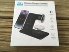 The Wireless Charger 3in1 Charging Station is designed for Apple devices, including iPhones (such as iPhone 15, 13, 12, 11, XS) and Apple Watches (Series 9/8). This charging station allows for fast wireless charging and comes with a USB cable for connectivity. It features a 3-in-1 design for charging multiple devices simultaneously and is made of ABS material. The compact unit can be placed flat on a table for convenient use, making it a practical and efficient charging solution for Apple users.