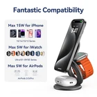 Wireless Charger Aluminum Alloy Station iPhone 12-15 Pro/Max/Plus Apple Watch 【Fast Charger for Apple Watch】Equipped with high-performance chip that with a 20W fast charging adapter, this charging station can charge your iPhone and apple devices with the fastest speed. Charging your Apple Watch from 0 to 100% now takes approximately 2.0-2.5 hours, eliminating the need for lengthy waiting times, Maximum output power 5W. Please note that fast charging is supported for Apple Watches with the following models: Ultra 2/Ultra. 【All Aluminum Alloy Material】The KUXIU X63 is crafted using aluminum alloy with CNC machining. Ensures excellent durability and superior heat dissipation, while the exquisite and stylish round design brings comfortable touch feeling. Besides, the bottom and surface of the charging basewith anti-slip silicone design so that the charger will not move or flip. No more worries about your phone slipping off any surface during charging. 【Foldable & Portable Design】This 3 in 1 charging station has only half size of the iPhone After being folded. The innovative design of flexible three roll axes allows you to adjust the height and angle freely. Fully foldable design makes it very compact and portable to carry anywhere without taking up space. It can be folded for horizontal charging or unfolded as a stand for vertical charging. If you travel a lot, you need to requiring only one cable and adapter to charge Apple devices at once. 【Strong Magnetic Safe Wireless Charging】Built-in high-quality magnets uses the latest Mag-Safe charging technology to ensure perfect alignment and lock automatically. strong magnetic connection to you a fast and stable wireless charging experience. Compatible with iPhone 15/14/13/12 series (Please work without cases, or use mag safe/magnetic cases).Qi-Certified & Safe Multi-Protection to prevent overcharging and protect your device's battery for safer charging. 【Multi-Functional 3-in-1 Charging Station】The KU XIU 3-in-1 wireless charging station combines the best features of all other wireless chargers. Supports iOS 17 StandBy mode. It can simultaneously charge your iPhone, iWatch, and AirPods. Compatible with iPhone 15/14/13/12 Pro Max Plus Mini; Compatible with Apple Watch Ultra/Ultra2/9/8/7/6/5/4/3/2/SE, 5W for Apple Watch wireless fast charging; compatible with Airpods 3/2/PRO. Free up space on your desktop, No more messy cables. 【What You'll Get】A 3-in-1 charging station, a Type-C to Type-C Cable, an 20W adapter, and a storage box. Portable iPhone charger is perfect as a Thanksgiving gift, Christmas gift, birthday gift, or New Year's gift the perfect gift for anyone in your family and friends. Each charging station we send undergoes a series of quality inspection processes. If you have any questions, please feel free to contact us! We will definitely provide you with a satisfactory solution