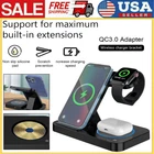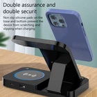 Note: Use a 9V/3A power adapter (not included) to ensure that your iWatch and Airpods can charge simultaneously Features: 1. [Foldable and portable] The charging station has a thickness of less than 0.6 inches when folded, occupying very little space. The charger bracket folding bracket can also adjust the metal bracket to support the comfortable angle you want. Horizontal and vertical screens can also make the charger work. Just one cable is enough to charge your device, making your desktop and bedside table cleaner. This wireless charging dock can charge four devices simultaneously, making your life more convenient. 2. [Humanized design and perfect decoration] The universal desktop charging stand with a 45 degree ergonomic design allows users to charge their phones. Wireless charging pads support charging your devices at the same time and location. The experience of the 4-in-1 wireless charger base looks small and elegant, perfectly decorating your bedroom and desk. This wireless charger stand can charge four devices simultaneously, making your life more convenient. 3. [Fast and Safe Charging] The wireless charging pad is equipped with efficient components and advanced chips, providing temperature control, overcurrent and overvoltage protection, and foreign object detection. It can also greatly improve the charging speed of the wireless charger base. However, please use a suitable adapter for charging. 4. [Four in One Wireless Charger Stand] The wireless charging station can be used for your Apple iWatch 2/3/4/5/6/SE/7/8/Ultra [ not compatible with Samsung watches ] Airpods Pro/2/3/Pro2、 Simultaneous charging of mobile phones, such as iPhone 14/14 Plus/14 Pro/14 Pro Max/13/13 Pro Max/14 Mini/12/12 Pro/12 Pro Max/12 Mini/11 Pro/11 Pro Max/SE/8/8 Plus, Samsung Galaxy S22/S21/S20/S10 series. Say goodbye to messy wires and keep your desk and bedside table tidy and orderly. For a better charging experience, please use the QC 3.0 power adapter ( excluding QC 3.0 adapter ). Specifications: *Name: Four in One Wireless Charging *Input: 9V=2A/3A *Watch output: 5W *Earphone output: 5W *Mobile output: 10W-20W *Transmission distance: ≤ 6mm *Charging efficiency: ≥ 73% *For mobile phone output: 5W/7.5W/10W/15W/20W/30W/65W/100W (100W will be faster than other products) *Color: Black/White *Material: ABS Packing list: 1 * Wireless charging bracket 1 * Type-C data cable