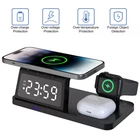 Picture Gallery Description Attention: 1. For a fast charging experience, please use a 9V-3A or 12V-2A power adapter (adapter not included). 2. The watch charger is only for Apple Watch, it can't charge Samsung Watch or other brand watches. Features: 1. [ 5-in-1 ]: The 5-in-1 wireless charger can charge up to 3 devices wirelessly, you can also connect 1 device for wired charging. It includes alarm clock. 2. [ 5-in-1 Design ]: The wireless charging station can charge your phone, Apple Watch and headphones at the same time, say goodbye to messy wires and keep your desk and nightstand neat and organized. For better charging experience, please use QC 3.0 power adapter (QC 3.0 adapter not included). 3. [ Widely Used ]: 5-in-1 charging stand can be used in bedroom, kitchen, office and anywhere you like. 4. [ LCD Clock Display ]: Equipped with time display and alarm clock, this charger is very useful to put on your desk. 5. [ Safe Charging ]: The wireless phone charger provides temperature control and voltage protection as well as short circuit prevention to ensure safe and stable charging. This wireless charger provides you with a safe experience. Anti-slip silicone pads on the base and bottom protect your device from scratches and slips while charging. 6. [ Universal Compatibility ]: charging cradle for most Apple devices. Compatible with iWatch Series 8/7/6/SE/5/4/3/2/1 (not compatible with Samsung watches); Compatible with AriPods Pro/3/2/1; Compatible with iPhone 8/X/11/12/13/14 series, Samsung S10/S20/S21/S22; Note8/10/20/21 series; Compatible with other Samsung cell phone series that support wireless charging and all other cell phone brands that support wireless charging. Specifications: *Product name: 5-in-1 wireless charger *Mobile phone output: 5W/7.5W/10W/15W *Watch output: 2.5W (max) *Headphone output: 3W (max) *Charging distance: 1-8MM *Charging efficiency: ≥75% *Product Material: ABS *Product color: black Package Includes: 1*5-in-1 wireless charger 1*Type-C cable 1*User Manual Attention: 1. Not include power adapter! 2. Item is limited to charger only, excludes headphones, watch! 3. Please allow a difference of 1cm error due to manual measurement! 4. Depending on the light color or monitor hue may vary! Shipping Policy Payment Policy Return Policy Shipping Policy 1. We only ship to confirmed PayPal addresses. 2. Economy Shipping, with no tracking number. Standard Shipping, with tracking number. Express (Expedited) Shipping, with tracking number. 3. Economy shipping needs 2-5 weeks to arrive mostly. In rare case, it can take up to 6-8 weeks. It depends on your location and local postal service, as well as the weather condition along the shipping. 4. If you need a faster delivery time, you could choose Express (Expedited) Shipping. If you need a tracking number, you could choose Standard Shipping. Payment Policy We accept PayPal only. We only ship item to your PayPal verified address. Please pay attention that import duties, taxes and charges are not included in the item price or shipping charges. These charges are the buyer's responsibility. Please check with your country's customs office to determine what these additional costs will be prior to bidding/buying. Return Policy 1. We offer 60 day money back or replacement guarantee. In addition, it allows customers to return new and unused products in their original factory condition for any reason within 60 days from the date of purchase. 2. Although we test each item and they are packed professionally, few item (less than 0.1%) might be damaged during the shipping. Please feel free to contact us within 4 days after you receive your package about replacement. 3. If you don't receive items over 35 days, please make sure to contact us before leaving any neutral or negative feedback. We'll try our best to help you solve the problem. If we authorized the return, customers will get an email with instructions for returning the item. Email will be replied within 24 hours on Chinese business hours. On Jan 30, 2025 at 23:07:34 PST, seller added the following information: