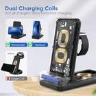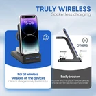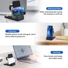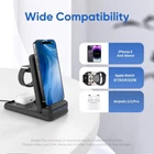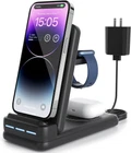 Charging Station for Multiple Devices Apple - DNTGVUP Foldable 3 in 1 Wireless Charger for iPhone 15/14/13/12/Pro/Plus/11/XS/XR/X/8, Charger Stand Compatible with Apple Watch S2-S7/SE, AirPods Black About this item ✅3 IN 1 Design - DNTGVUP wireless charger for iPhone can charge your phone, watch and earbuds at the same time. 3 in 1 charging Design saves desk space. Perfect for home, office and travel use. Also meets the needs of individuals or families who use multiple devices for charging. (Note: Only works with phone/watch/wireless charging version of earbuds) ✅Wide Compatibility - Our wireless charging station provides 15W highest-speed charging for iPhone 15/14/Pro Max/Plus/13/Pro Max/Mini/12/SE/11/11 Pro/Pro Max/ XS/XS Max/XR/X/8/8 Plus; also perfect for Samsung Galaxy S series(S6-S22/Ultra/+/5G/e/edge/edge+)/Galaxy Note 5 - Note 10 and other Qi phones, 3W for airpods and other earbuds wireless charging vision, 2.5W only for apple watch. The Phone and watch charging station should be connected to a USB-C cable and a 9V,2A QC3.0 charging adapter. ✅Landscape & Portrait Orientation - Charge in portrait mode for video calling and messaging or landscape orientation while watching videos. ✅Foldable Design - The angle of placement of the device can be adjusted according to personal preference when charging. When not in use, it can be folded up. The compact design is perfect for putting it in your bag. ✅Multiple Protection - UL, FCC approval. With Overheat, overcurrent protection. Metal foreign object indication (flashing) ensure safer charging. 3 indicators show you the charging status of each device. Left light is on - watch is charging. Middle light - earbuds charging. Right light - phone charging. ✅Ergonomic Design - Raised base makes the phone keyboard just at thumb height for easy typing. Angle-adjustable flip cover for a more comfortable position to charge while using the phone. Product Description APPLICABLE DEVICES [ PHONE - Fast Charging ] iPhone14, iPhone 14 Pro, iPhone 14 Plus, iPhone 14 Pro Max, iPhone 13 Pro Max, iPhone 13 Pro, iPhone 13, iPhone 13Mini iPhone 12, iPhone 12Pro, 12 Pro Max, 12 mini, iPhone SE-2/3 Gen, iPhone 11,11 Pro, 11 Pro Max, XS, XS Max, XR, X, 8, 8 Plus [ Watch ] iWatch S2, iWatch S3, iWatch S4, iWatch S5, iWatch S6, iWatch SE, iWatch S7, iWatch S8 [ EARBUDS ] For Apple: AirPods 2, AirPods 3, AirPods Pro For Samsung: Galaxy Buds, Buds+, Buds Pro, Buds Live SPECS Input: 9V,2A Phone Output: 15W/10W/7.5W/5W Earbuds Output: 3W Watch Output: 2.5W NOTE Please make sure your phone/watch/earbuds is the wireless charging version. Please make sure your phone in the center of the charging surface and stay close to it. Phone cases allowed (thickness ≤ 0.2 inch) Phones cases ≤ 0.2 inches thick can be charged by this wireless charger fast charging. Phones with metal objects in their cases may NOT be charged by this phone charger station. The camera lens portion of the case is too thick, which may result in the phone not being able to fit snugly into the charging station, thus preventing charging. NOTE WHEN CHARGING Invalid Placement These two placements are invalid. If the charging receiving area of your phone cannot be aligned with the charging identification area of the wireless charger, the charging station will not be able to charge your phone, or it will cause low charging efficiency and get hot. Lay flat - Horizontal Charging (1) The charging receiving area of the phone should be placed in the white print (the white print is the wireless charger's charging induction area) Lay flat - Horizontal Charging (2) The charging receiving area of the phone should be placed in the white print (the white print is the wireless charger's charging induction area) Leave a 0.8 inches distance Leave 0.8 inches distance (about two finger widths) between the ridge and phone. Less than 0.8inches may not charge.