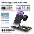 Attention: 1. For a fast charging experience, please use a 9V-2A or 12V-2A power adapter (adapter not included). 2. The watch charger is only for Apple Watch , it can't charge Samsung Watch or other brand watches. Features: 1. [5-in-1 Charging Station] The wireless charger conveniently charges your iPhone, Apple Watch, AirPods, and other devices with wireless charging capabilities at the same time. The charging station makes it easy to charge your entire desktop and nightstand, so say goodbye to tangled cords. Compatible with iPhone 16, 15, 14, 13, 12, 11Pro/Max/Mini/Plus, X, XR, XS/Max, SE, 8/Plus, iWatch 8/7/6/5/4/3/2/SE, AirPods 2/3/pro/pro 2. 2. [Rapid Wireless Charger] Simply place your wireless device on the charging station, make contact and start charging steadily and efficiently. After many extreme tests and fan feedback, we use high power charging chips and world-class electronics to ensure the fast charging quality of the charging station. 3. [Safe Wireless Charger Holder] Wireless charging station with over-current protection, over-voltage protection, over-temperature protection and foreign object detection. The wireless charging station's reasonable internal circuit design prevents overcharging from damaging the device's battery and ensures safe and fast charging of the device. 4. [Foldable Travel Wireless Charger] The wireless charging station for a wide range of iPhone devices features a compact and foldable design that provides fast charging for your iPhone at home, in the office and on the go. The wireless charger can be used as a wireless charger stand with angle adjustment. The wireless charger can be used as a wireless charging pad to keep your phone charged by simply laying it flat. 5. [Fits Cases and Sleep Friendly Indicators] The wireless charger supports most cases up to 2 inches/5 mm thick, eliminating the need to remove the case when charging with the wireless charging station (excluding cases with magnetic or metal attachments). Place your device on the wireless phone charger to start charging, and the LED night light can be turned off manually. So you don't have to worry about the light affecting your sleep. Specifications: *Product Name: 5-in-1 Wireless Charger *Input power: 9V-2A/12V-2A *Mobile phone output: 5W/7.5W/10W/15W/30W *Watch output: 5W (max) *Headphone output: 3W (max) *Charging efficiency: ≥75% *Product material: ABS *Product color: black/white Package List: 1 * 5-in-1 wireless charger 1 * Type-C cable Attention: 1. Not included not include the power adapter! 2. Item is limited to charger only, not including headphones, watches! 3. Due to manual measurement, please allow a difference of 1cm error! 4. Depending on the light color or monitor hue may vary!