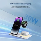 Attention: 1. For a fast charging experience, please use a 9V-2A or 12V-2A power adapter (adapter not included). 2. The watch charger is only for Apple Watch , it can't charge Samsung Watch or other brand watches. Features: 1. [5-in-1 Charging Station] The wireless charger conveniently charges your iPhone, Apple Watch, AirPods, and other devices with wireless charging capabilities at the same time. The charging station makes it easy to charge your entire desktop and nightstand, so say goodbye to tangled cords. Compatible with iPhone 16, 15, 14, 13, 12, 11Pro/Max/Mini/Plus, X, XR, XS/Max, SE, 8/Plus, iWatch 8/7/6/5/4/3/2/SE, AirPods 2/3/pro/pro 2. 2. [Rapid Wireless Charger] Simply place your wireless device on the charging station, make contact and start charging steadily and efficiently. After many extreme tests and fan feedback, we use high power charging chips and world-class electronics to ensure the fast charging quality of the charging station. 3. [Safe Wireless Charger Holder] Wireless charging station with over-current protection, over-voltage protection, over-temperature protection and foreign object detection. The wireless charging station's reasonable internal circuit design prevents overcharging from damaging the device's battery and ensures safe and fast charging of the device. 4. [Foldable Travel Wireless Charger] The wireless charging station for a wide range of iPhone devices features a compact and foldable design that provides fast charging for your iPhone at home, in the office and on the go. The wireless charger can be used as a wireless charger stand with angle adjustment. The wireless charger can be used as a wireless charging pad to keep your phone charged by simply laying it flat. 5. [Fits Cases and Sleep Friendly Indicators] The wireless charger supports most cases up to 2 inches/5 mm thick, eliminating the need to remove the case when charging with the wireless charging station (excluding cases with magnetic or metal attachments). Place your device on the wireless phone charger to start charging, and the LED night light can be turned off manually. So you don't have to worry about the light affecting your sleep. Specifications: *Product Name: 5-in-1 Wireless Charger *Input power: 9V-2A/12V-2A *Mobile phone output: 5W/7.5W/10W/15W/30W *Watch output: 5W (max) *Headphone output: 3W (max) *Charging efficiency: ≥75% *Product material: ABS *Product color: black/white Package Includes: 1 * 5-in-1 wireless charger 1 * Type-C cable Attention: 1. Not included not include the power adapter! 2. Item is limited to charger only, not including headphones, watches! 3. Due to manual measurement, please allow a difference of 1cm error! 4. Depending on the light color or monitor hue may vary! On Dec 11, 2024 at 03:19:47 PST, seller added the following information: