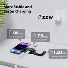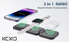 3 in 1 Magnetic Foldable Wireless Charging Station for iPhone Airpods Charger Descriptions: The portable X55 3 in 1 wireless charging is a three coil fast charging scheme, which is compatible with WPC1.2.4 standard to achieve efficient wireless charging. The system transmits three-way charging power up to 22W, compatible with 3W, 5W, 7.5W, 10W and 15W. With multiple foreign object protection measures, it can easily fold and put into your pocket, making your office and entertainment more portable. Support wireless charging of Apple, Samsung, Huawei, Xiaomi, LG and other mobile phone products. Headset compatible series: Air pods1, Air pods2, Air pods pro3, Galaxy Buds , Liberty Air, Liberty 2 pro, etc Watch compatible series: Apple watch 8/7/6/5/4/3/2, Apple watch SE, Wireless charging devices, from flat-lay charging to dock charging, greatly beautify the desktop space and improve convenience. But, as more devices support wireless charging, how can you buy just one device to meet all of your needs? KUXIU magnetically-aligned 3-in-1 wireless charging stand is available to assist. It can wirelessly power iPhone, Apple Watch, AirPods, and other smartphones along with one device connected via USB-C, thanks to its fast-charging technology and smart security features. Its sleek and modern design perfectly simplifies your desktop. After being folded, only half the size of your phone, say goodbye to those endless cables and chargers. KUXIU X55 wireless charging dock balances our core philosophies of integration and functionality, ensuring every user gets the best of both worlds: a hassle-free stay to charge your smart devices and a modern, simplified lifestyle. Package List: 1* Wireless Charger Stand only ,no include us Plug and other .