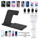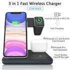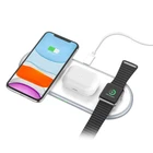 Supported phone devices: 15W: For Huawei Mate 40/ Mate 40 Pro/ Mate 40 Pro+/ Mate 30/ Mate 30 Pro/ P40 Pro/ P30 Pro/ Mate 20 Pro/ Mate 20 RS 10W: For Samsung Galaxy S20/ S20 Plus/ S20 Ultra/ Note 20/ Note 20 Plus/ Note 20 Ultra / Note 10/ S10/ S10 Plus/ S10 E/ S9/ S9 Plus/ Note 9/ Note 8/ S8/ S8 Plus/ S7/ S7 Edge 7.5W: For iPhone 12/ 12 Pro/ 12 Pro Max/ 12 Mini/ 11/ 11 Pro/ 11 Pro Max/ XS Max/ XS/ XR/ 8 5W standard wireless charge for all Qi-enabled Phones Watch : for Apple: iWatch Series 6/SE/5/4/3/2/1 Earphone: for Apple: Airpods 1/2, Airpods Pro (The Airpods 1/2 indicator is facing forward. Airpods Pro reverse charging.) for Xiaomi: Airdots Youth Version Some TWS Bluetooth headsets Note: To ensure safe and efficient charging, you must use a 12V / 2A or 9V / 2.7A adapter and a quick charging cable (The adapter is not included in the package.). Otherwise, it will affect the charging efficiency of the charger, and may not even support charging three devices at the same time. Packing list: 1*Wireless Charger Station 1*User Manual 1*Data Cable